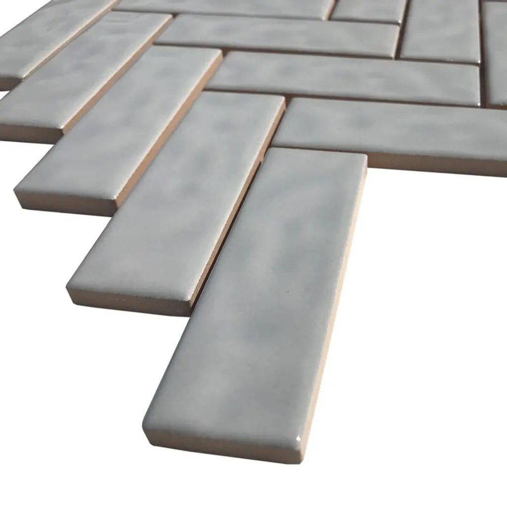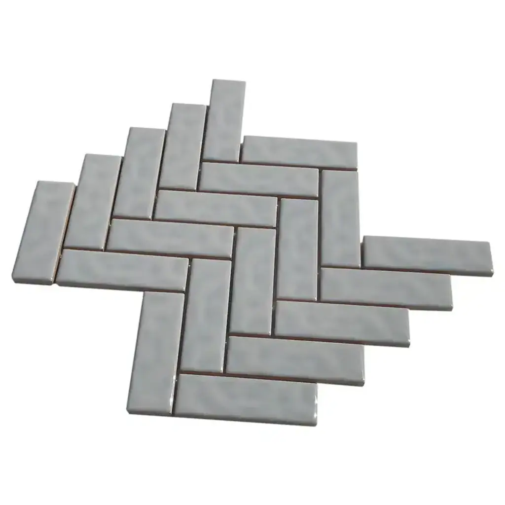 Forio 1.35" X 4.35" Herringbone Glossy Porcelain Mosaic Tile - 5 Sheets (4.50 Sf) - Grey