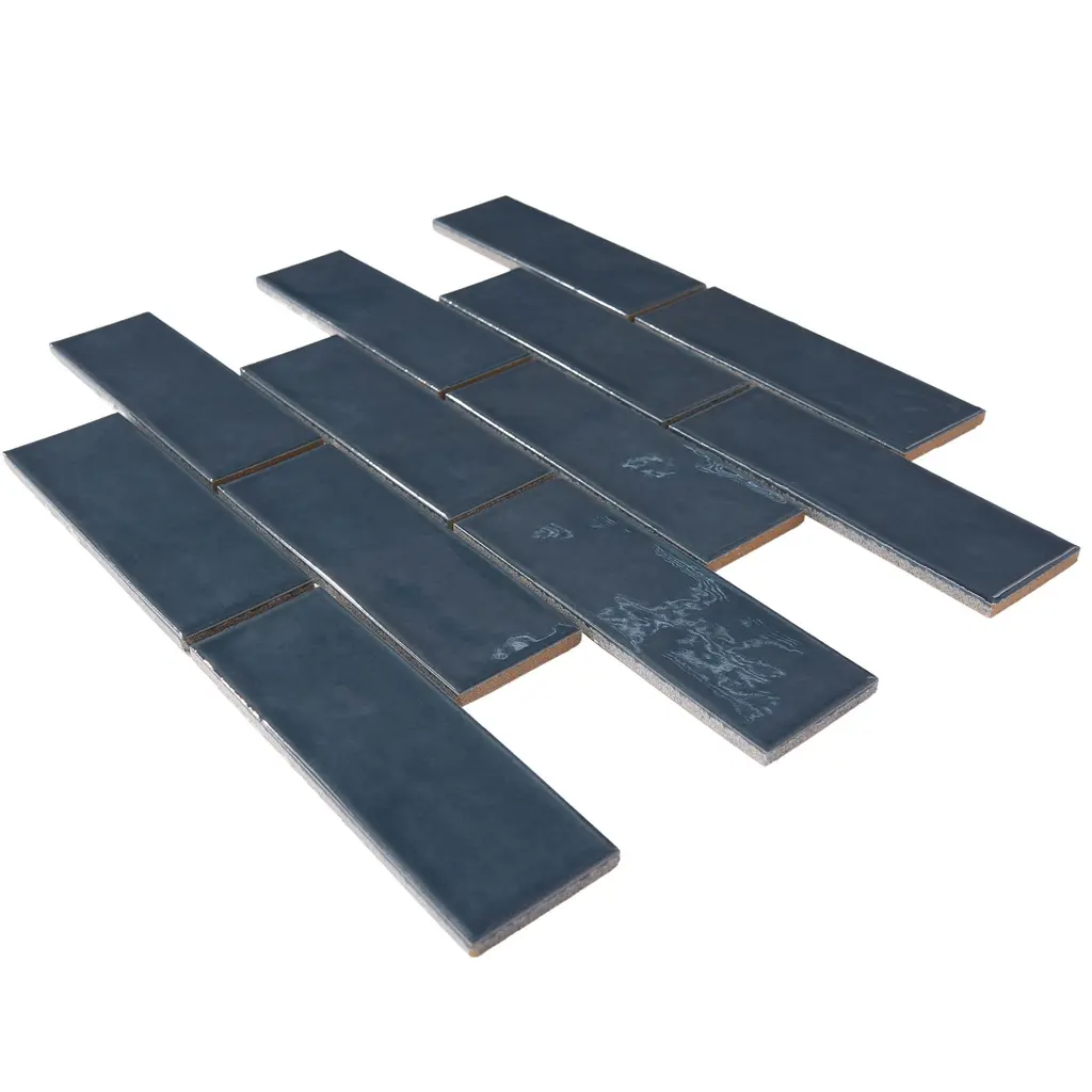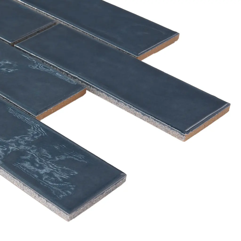 Forio 2" X 6" Brick Glossy Porcelain Mosaic Tile - 5 Sheets (4.95 Sf) - Blue