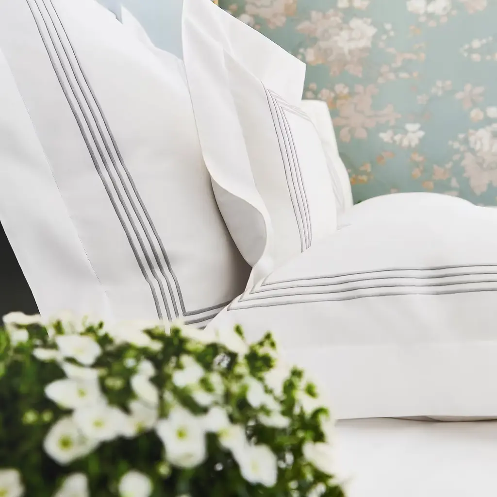 "Four generations" is devoted to the creation of a secluded, intimate ambiance in the bedroom, with a tint of magic. Its threads are made of long, super-fine gauge fibers woven into a crisp yet extremely soft product. Verderoccia sheets are made to dive in, sleeping is optional. A hand-machine driven embroidery on the new Estremo percale from a selection of life’s finest things. One top sheet, one fitted bottom, two standard shams. 100% Egyptian cotton, Made in Italy. Customizable upon request.