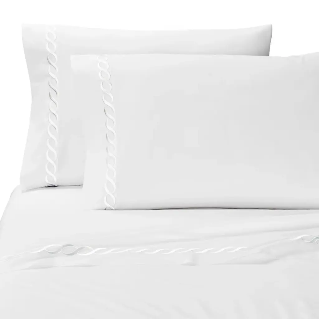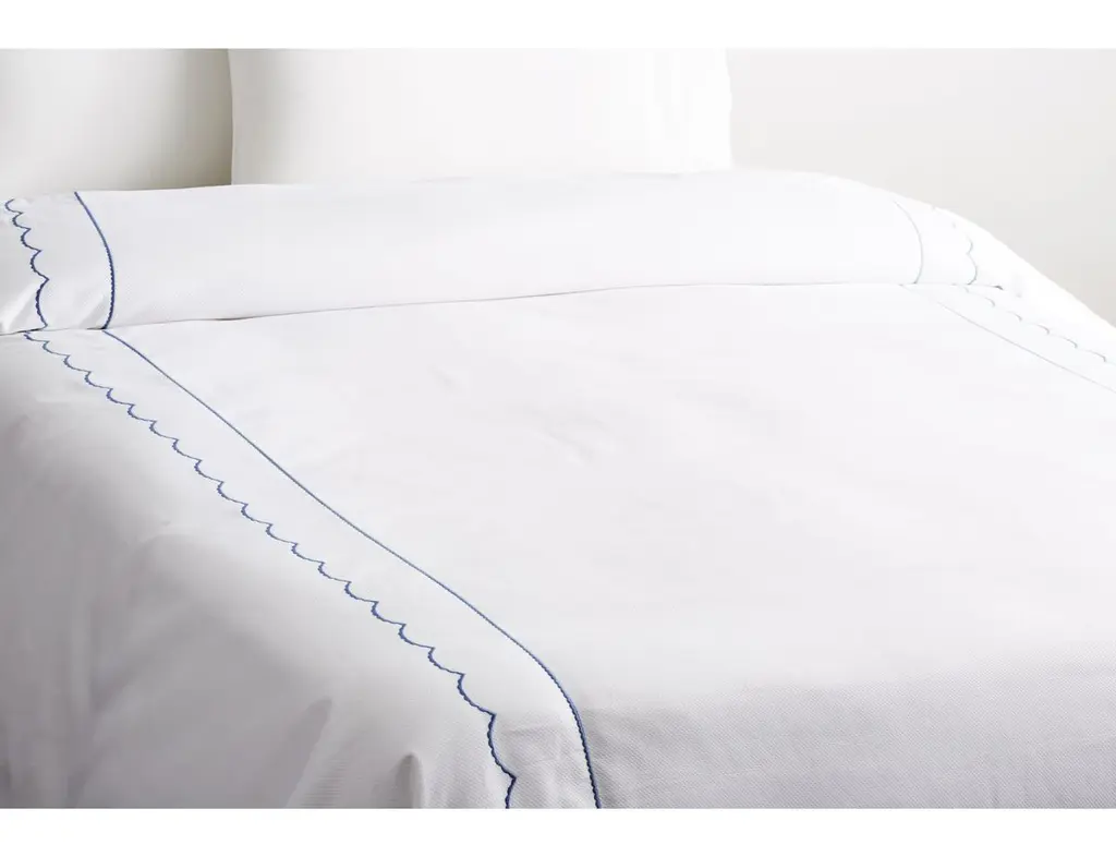 Embroidered scalloped details add a charming, colorful touch to this 220-thread-count cotton sheet set for a pretty and polished look.