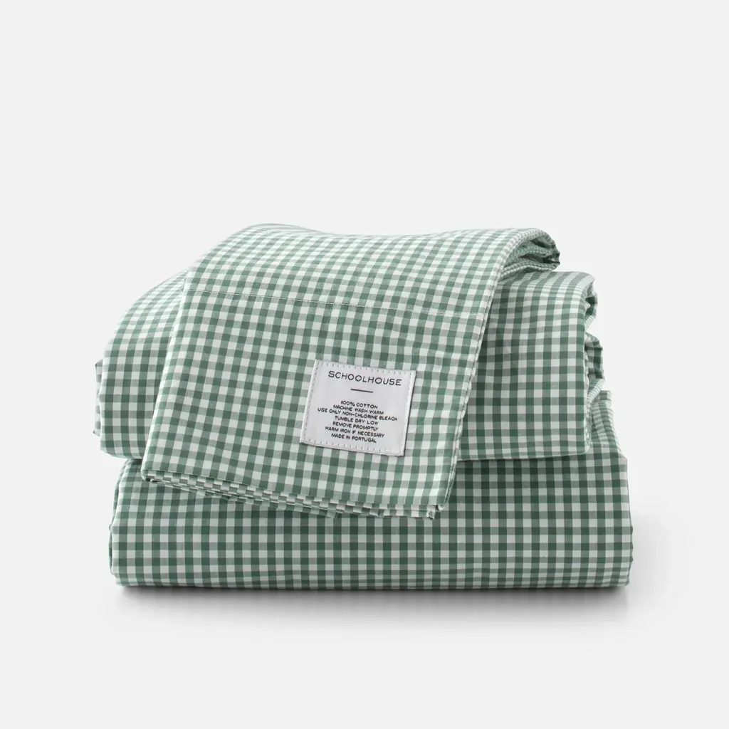 An everyday heirloom, the Gingham Sheet Set celebrates the timeless beauty of an iconic pattern. Era-defying, elegant, and with endless mix-and-match potential, this gingham bedding set’s calming hues and charming checks add subtle sophistication to any space. Woven with 100% cotton percale for a crisp, clean look and soft, lived-in feel. Made in Portugal.