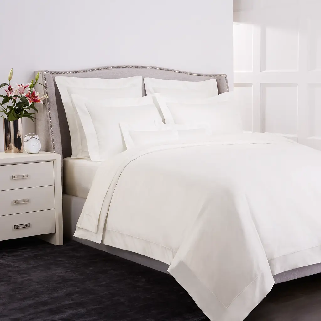 Classically elegant, this solid sheet set by Frette is crafted in luxurious, 600-thread count cotton sateen and finished with a shadow stitch on the cuff of the flat sheet and shams.