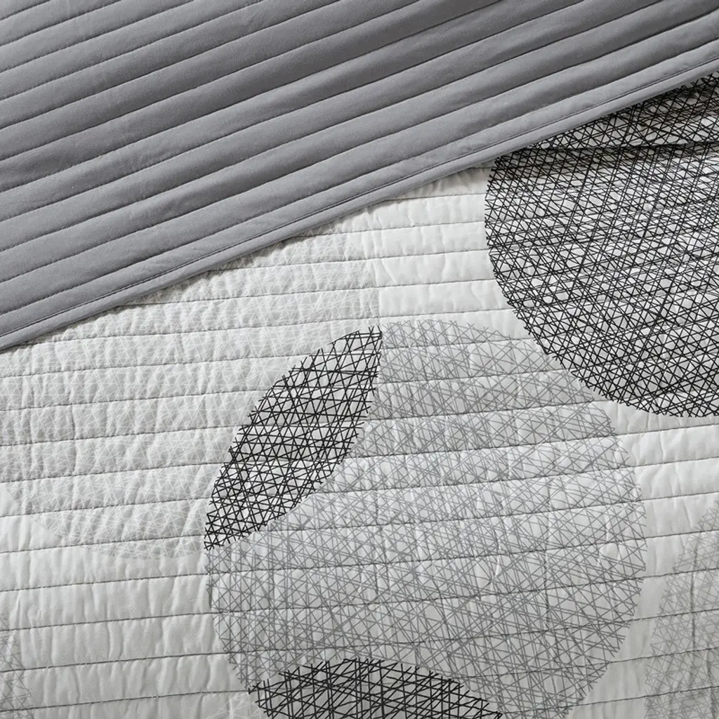 Gracie Mills Timothy Geometric Circle Reversible Quilt And Cotton Sheet Set - King - Grey