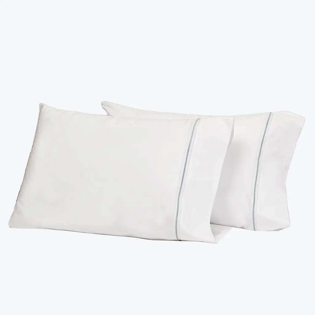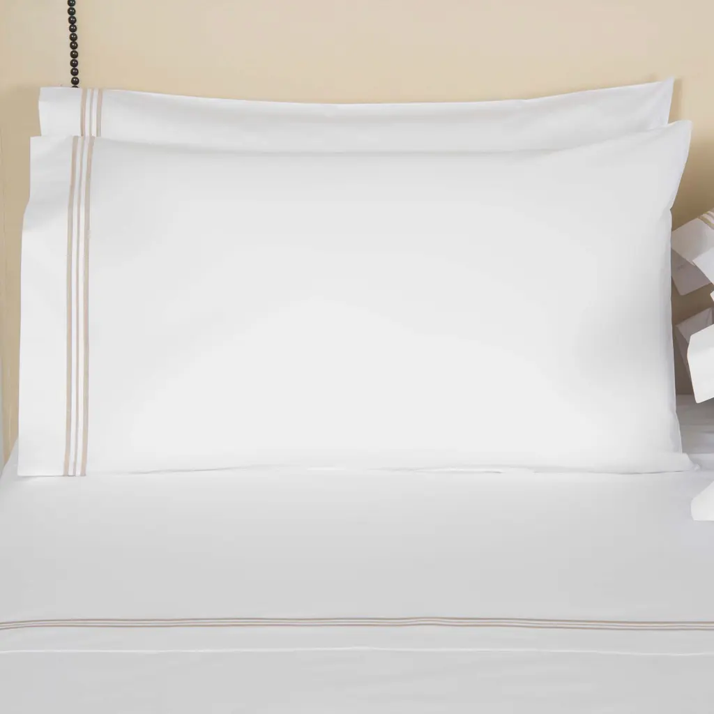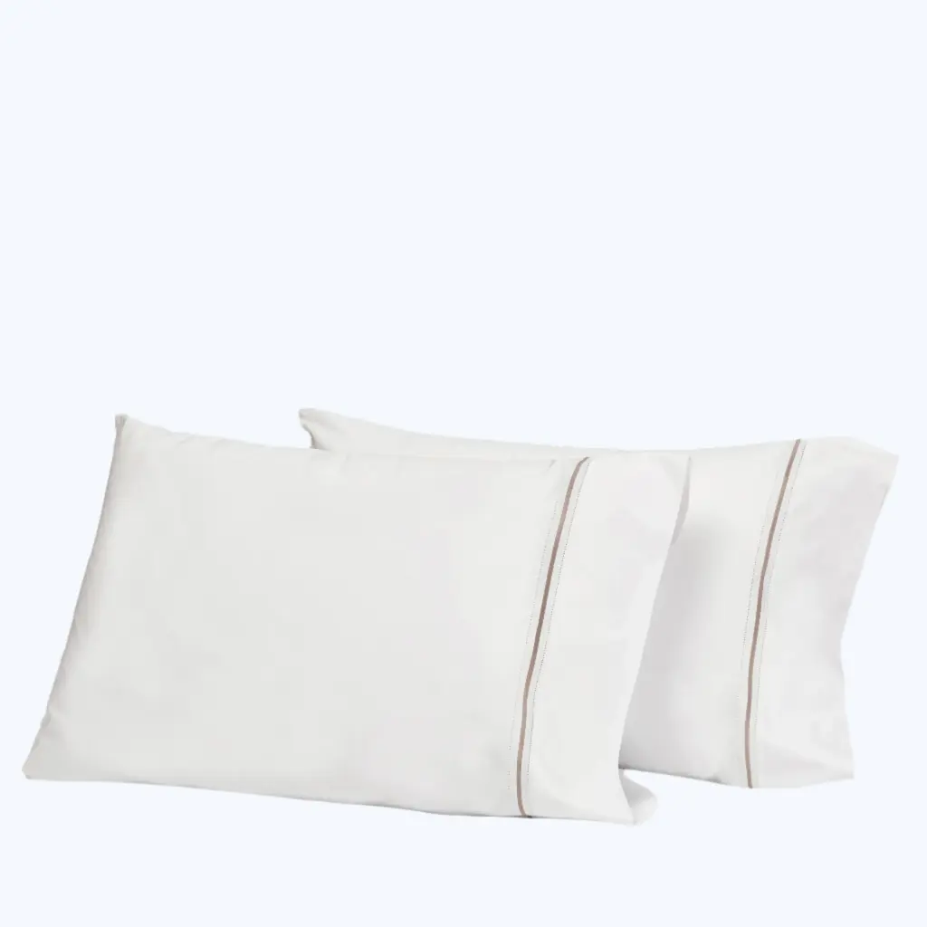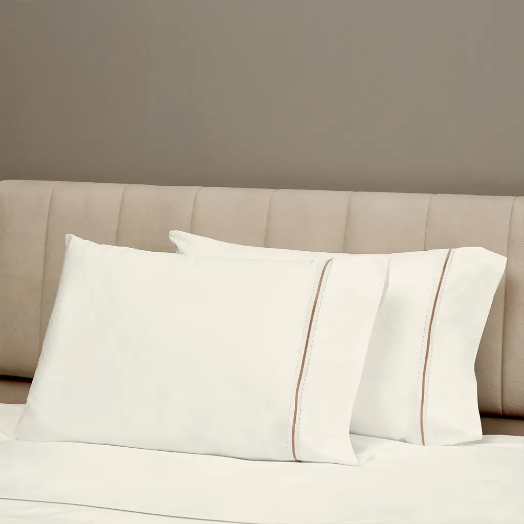 The Gramercy Sheets & Pillowcases in Ivory/Coffee bring timeless elegance and refined luxury to any bedroom or guest room. Made in Italy from 100% Extra Long-Staple SUPIMA® cotton with a 400 thread count percale, these sheets offer a crisp, smooth feel while maintaining a soft touch. The meticulously crafted double hemstitch and embroidered line lend an extra layer of sophistication to the set.The Gramercy Bedding Collection is available in a variety of color combinations, allowing you to curate your perfect sleep sanctuary. This set includes two pillowcases, designed with enduring style and quality. Ideal for those who appreciate a perfect balance of classic craftsmanship and contemporary elegance, Gramercy ensures comfort and style for years to come.