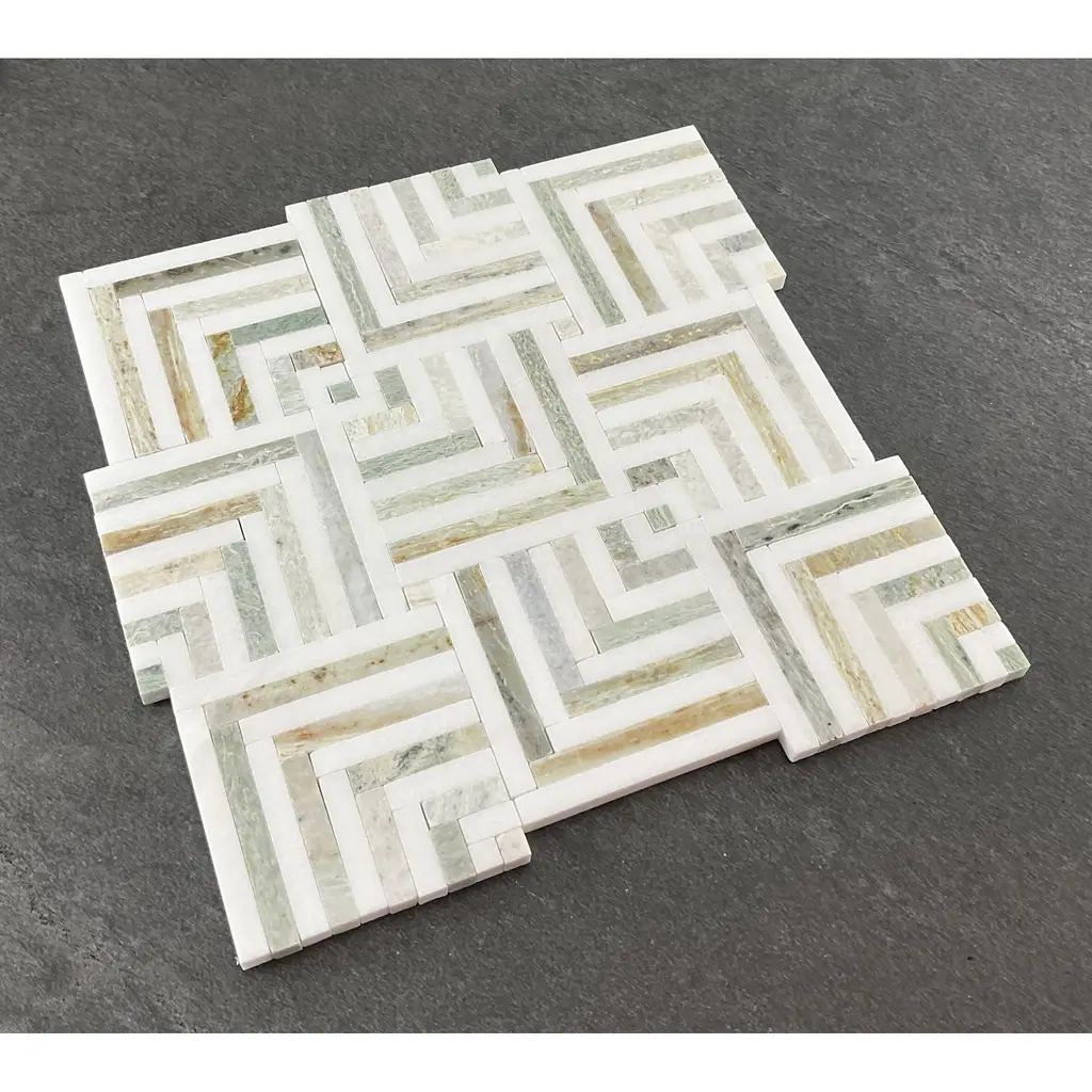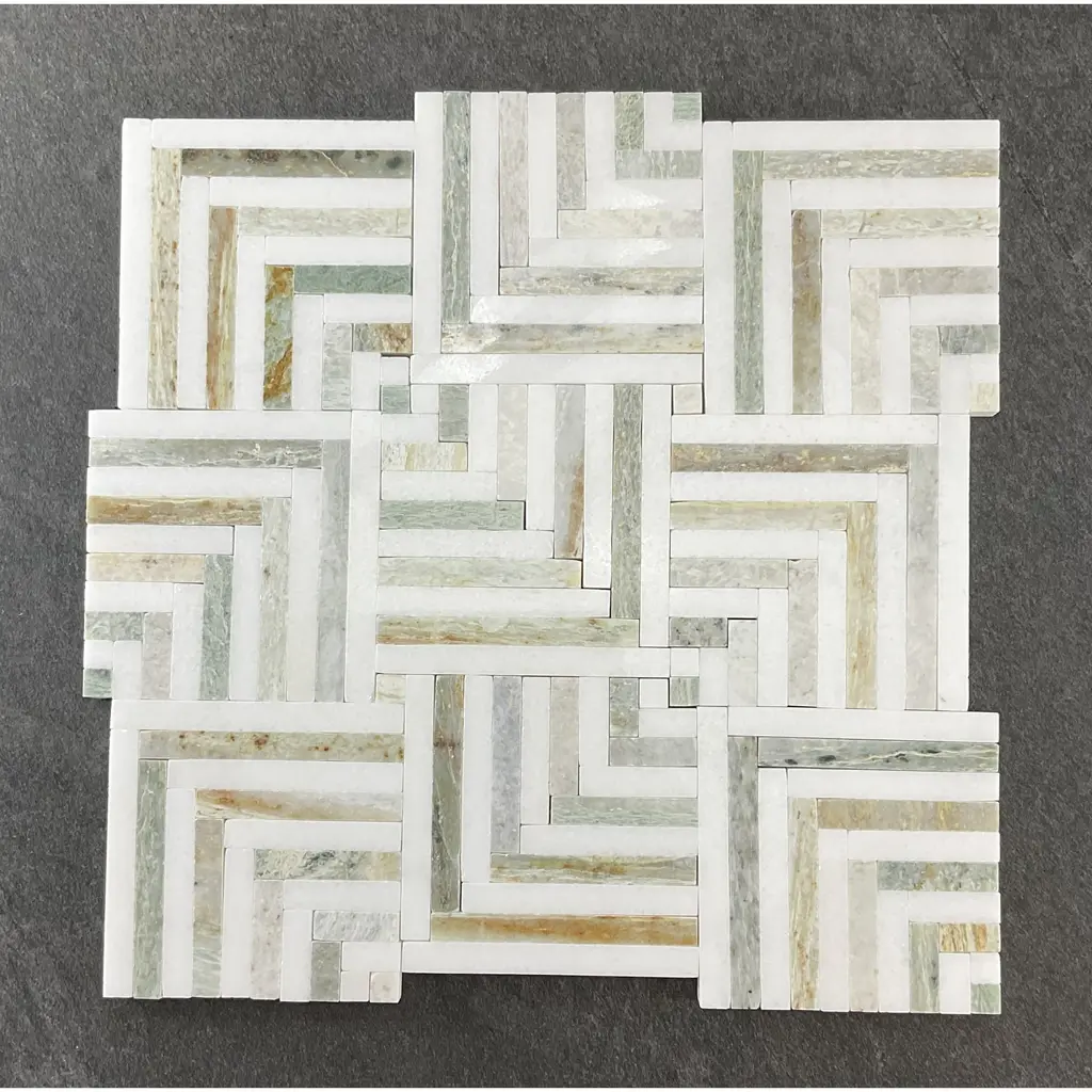Groutless Square Basketweave Marble Mosaic Tiles - Case (5 Sheets) - Case (5 Sheets) - Ming Green And Thassos White