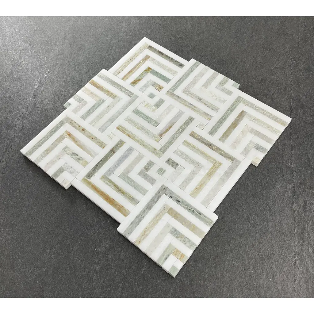 Color: Thassos White & Ming Green Overall Product Weight: 5 lb. Dimensions Mosaic Sheet: 12.25'' W X 12.25'' L Individual Tile: Multi Sizes Overall Thickness: 0.35 Surface Area per Carton: 5 SqFt Mesh-Mounted Tiles Installation Area: Kitchen Backsplash, Fireplace Front, Bathroom Wall, Shower Wall, Bathroom Floor, Shower Floor