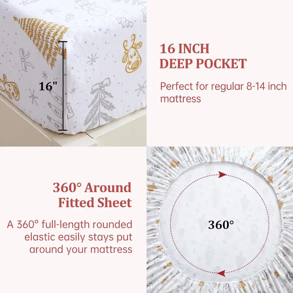 Gustowave King Size Christmas Soft Brushed Microfiber Holiday Bed Sheets Set With 16 Inches Deep Pocket