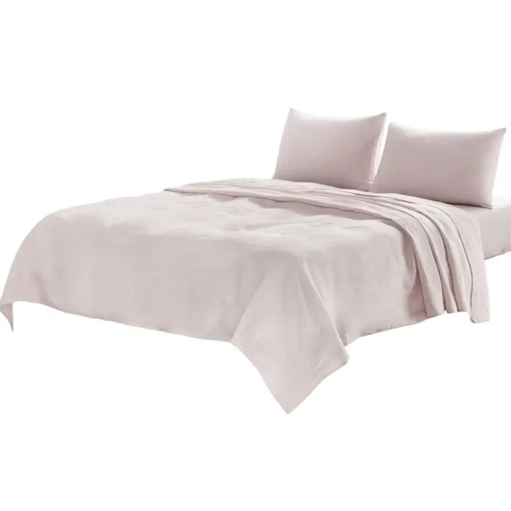 Homeroots Four Piece Champagne Pink Linen Sheet Set