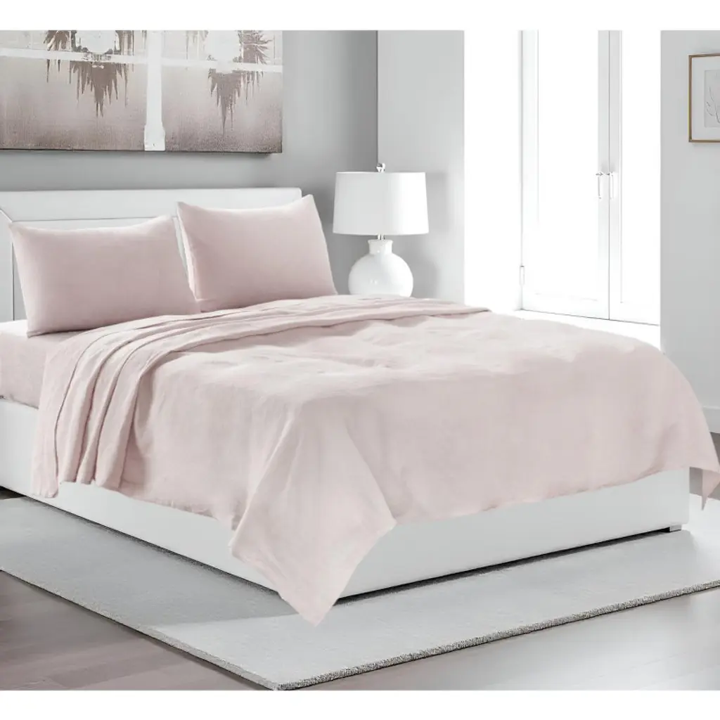 Homeroots Four Piece Light Pink Linen Sheet Set