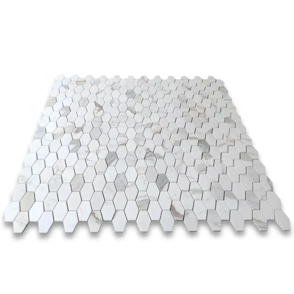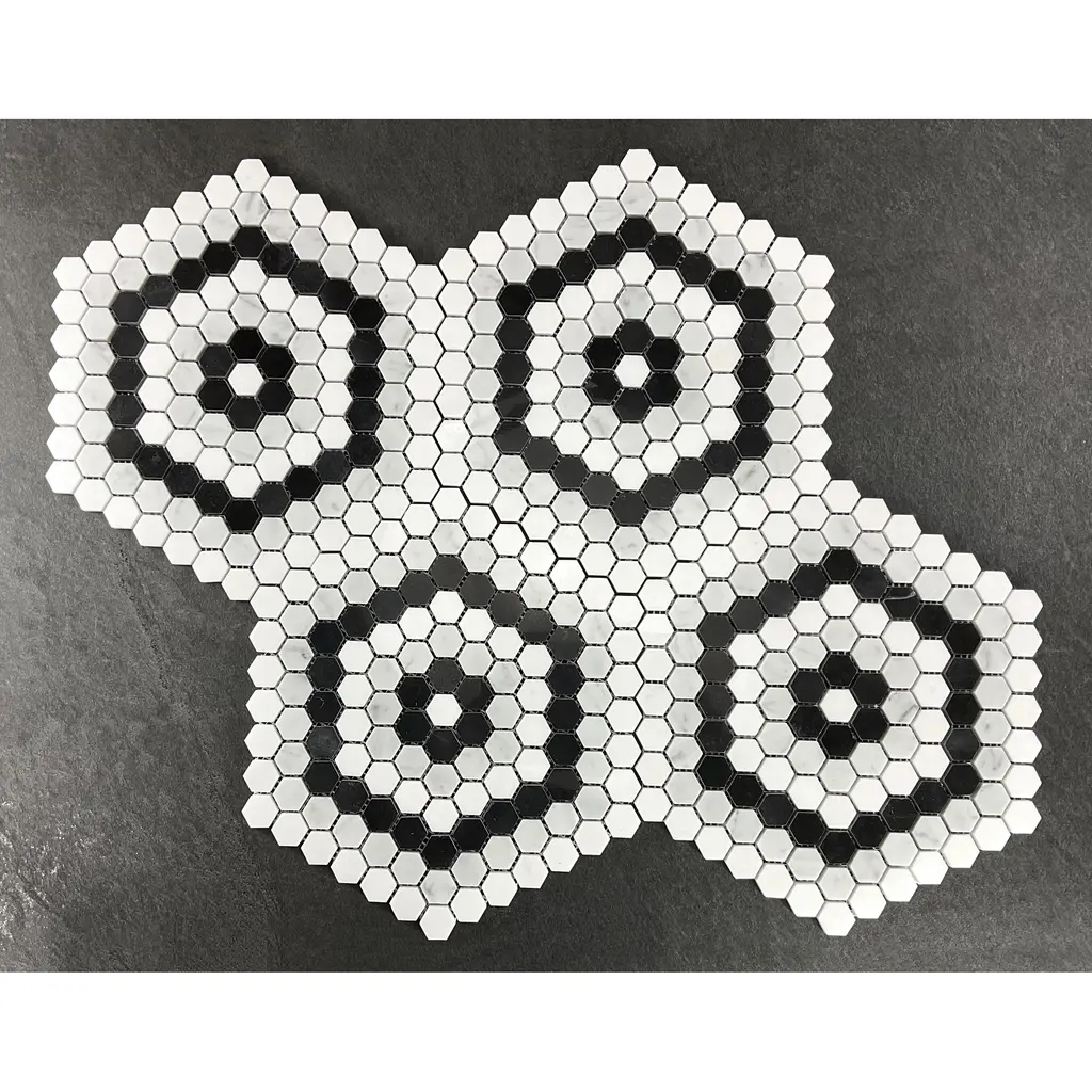 Honeycomb 1" Hexagon Marble Wall And Floor Tile - 1 Case (10 Sheets) - 1 Case (10 Sheets) - White Carrara - Thassos White - Black