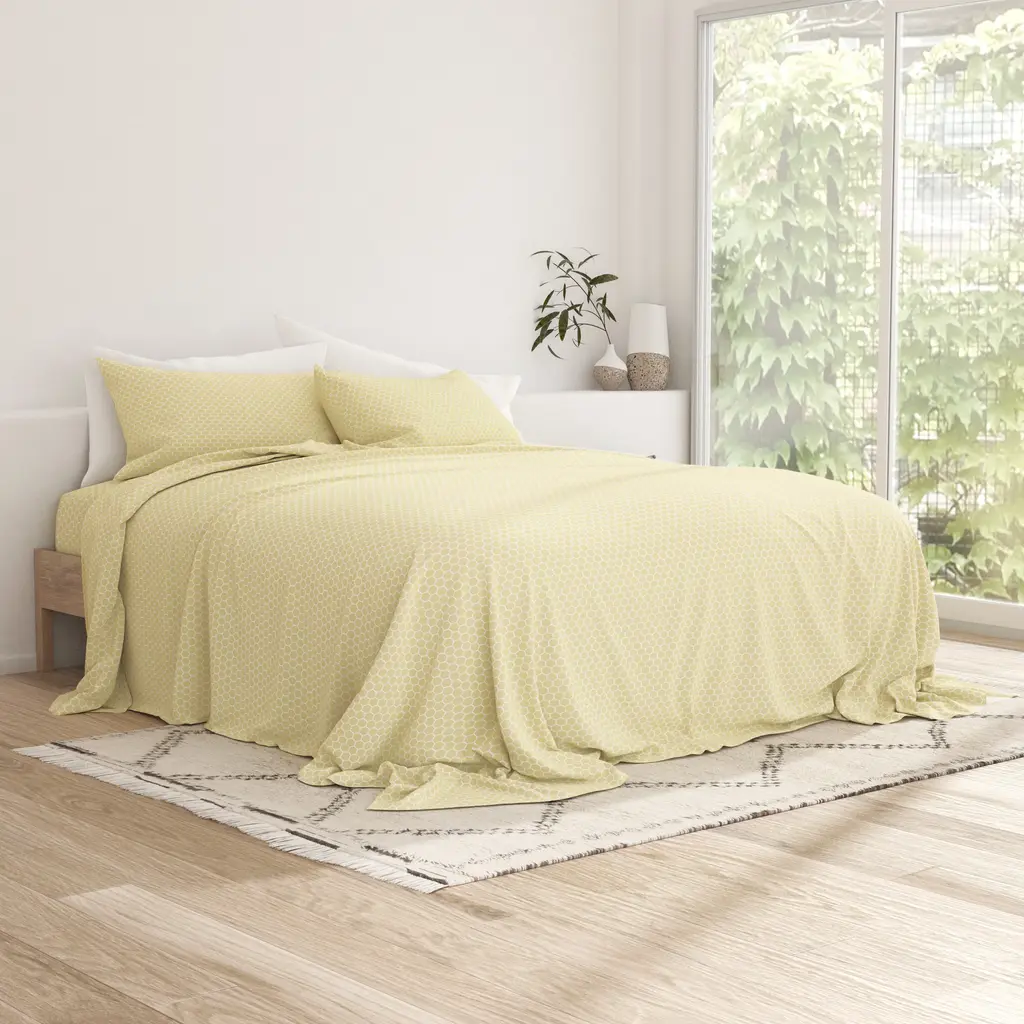 Our double-brushed patterned microfiber sheet set is super soft to the touch and wrinkle-resistant. We use premium yarns that are twice as durable as cotton, which means less risk of rips and wear. Naturally hypoallergenic, our sheets are ideal for sensitive skin and those with allergies. Available in a variety of unique designer prints and patterns, including florals, geometrics, and stripes, making it the perfect new addition to your room!