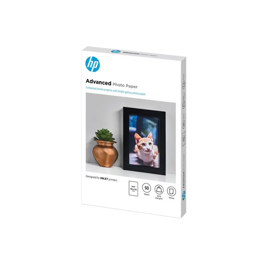 Hp Advanced Photo Paper, Glossy, 65 Lb, 4 X 6 In. (101 X 152 Mm), 50 Sheets F4t22a