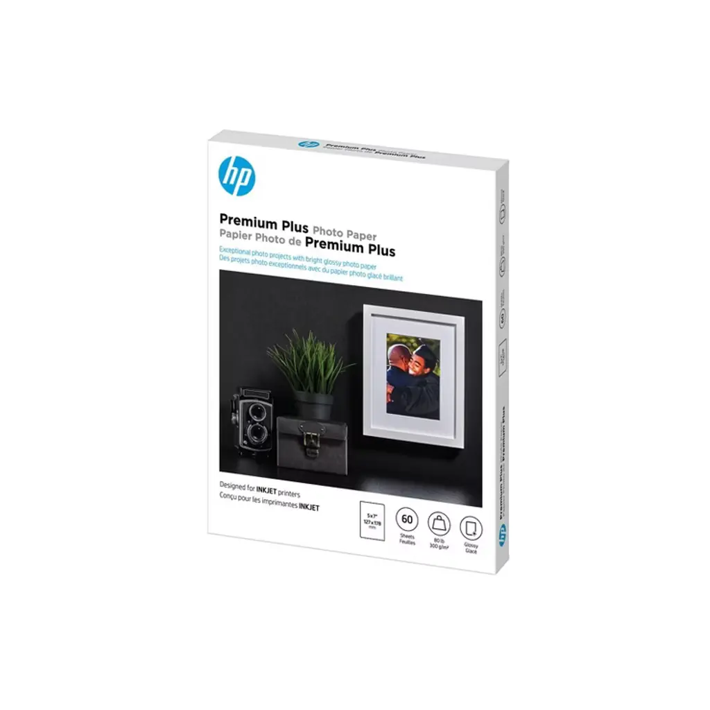 Hp Premium Plus Photo Paper, Glossy, 80 Lb, 5 X 7 In. (127 X 178 Mm), 60 Sheets Cr669a