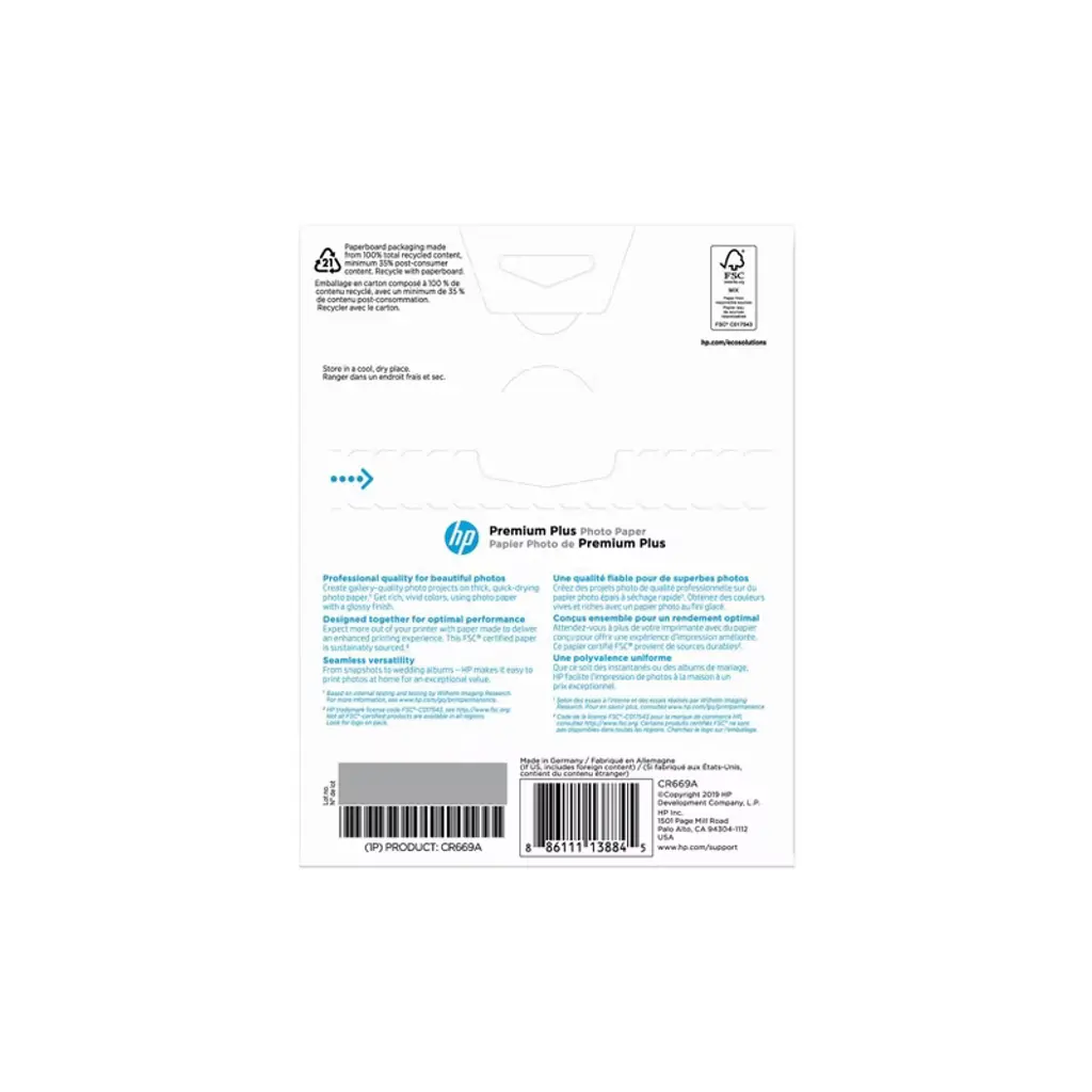 Overview - Use HP's premium-quality paper—compatible with all inkjet printers. Print smudge-free, water resistant, instant-dry photos that last for generations. - Ideal for high-quality photos with a professional look and feel. - Print professional-quality photos on any inkjet printer. Features Print beautiful photos, using HP's best paper. - Share your photos right away—they dry instantly and resist water and smudges. Experience exceptional inkjet printing. - Count on a photo paper designed to be compatible with all inkjet printers. Designed with the environment in mind. - This photo paper is made of FSC-certified mixed fiber from well-managed forests and other controlled sources. Disclaimers - When using Original HP inks. Display-permanence rating by Wilhelm Imaging Research, Inc., or HP Image Permanence Lab. For details, visit http://www.hp.com/go/printpermanence. - Paper may not be recyclable in your area.