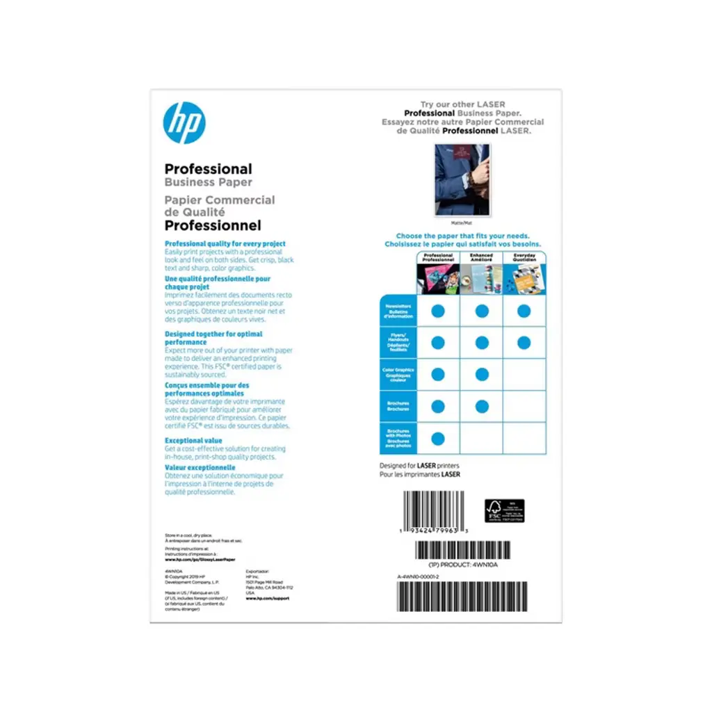 Overview - Produce professional-quality flyers, handouts, brochures, color photos, and more. This glossy, heavyweight paper is FSC®-certified and designed to deliver outstanding value for creating in-house marketing materials. - Marketing-department administrators or company procurement for businesses using laser printers. - Produce print-shop quality business collateral in-house on your laser printers. Rich color and sharp graphics and a glossy finish provide impressive professional impact. This FSC®-certified paper is responsibly sourced. Features Professional quality for every project - Produce professional quality with vivid color photos and crisp text that makes your business stand out. Designed together for optimal performance - HP products work better together to provide an optimal printing experience. Exceptional value - HP makes it easy to print marketing materials without leaving the office for an outstanding value. Disclaimers - HP’s policy is to use fiber from responsibly managed forests, and HP has a preference for offering Forest Steward Council® (FSC®)-certified papers. HP trademark license code FSC®-C017543, see http://www.fsc.org . Not all FSC®-certified products are available in all regions, look for logo on pack. - Most HP Papers are recyclable as mixed paper.