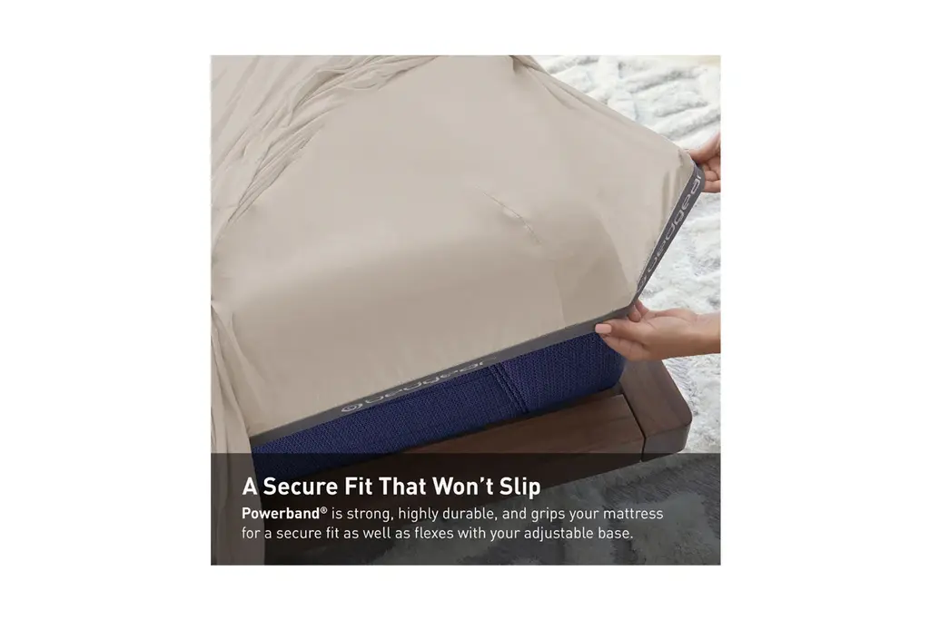Blended with performance fibers for an ultra-relaxed feel, the Hyper-Linen Beige Sheet Set by Bedgear is machine washable and breathable. This luxurious sheet set creates a slightly cool temperature to reduce heat buildup overnight. Elastic Powerbands on the fitted sheets and pillows cases ensure they stay securely in place and they work well with adjustable bases. Its 17-inch pocket depth fitted sheet accommodates even the thickest mattresses.