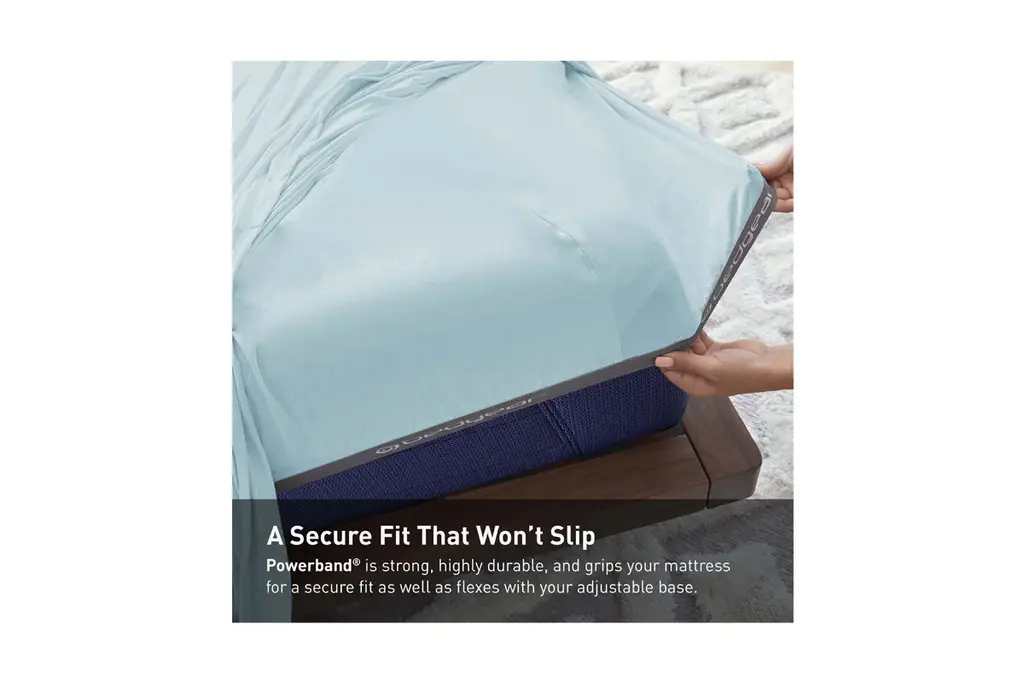 Blended with performance fibers for an ultra-relaxed feel, the Hyper-Linen Misty Blue Sheet Set by Bedgear is machine washable and breathable. This luxurious sheet set creates a slightly cool temperature to reduce heat buildup overnight. Elastic Powerbands on the fitted sheets and pillows cases ensure they stay securely in place and they work well with adjustable bases. Its 17-inch pocket depth fitted sheet accommodates even the thickest mattresses.