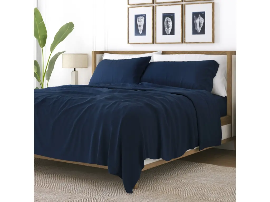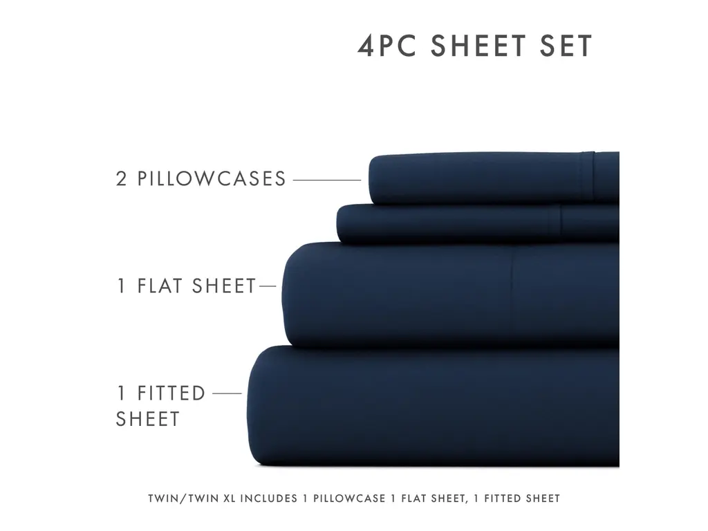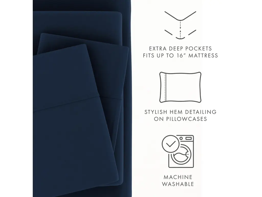 Create your own heavenly haven with this 4-piece California king sheet set. Woven of the finest imported double-brushed yarns for a new level of indulgence and breathability, soft-to-the-touch microfiber will stay smooth and wrinkle free for years of easy-care comfort. Available in a variety of coordinating colors for an irresistibly luxurious impression.