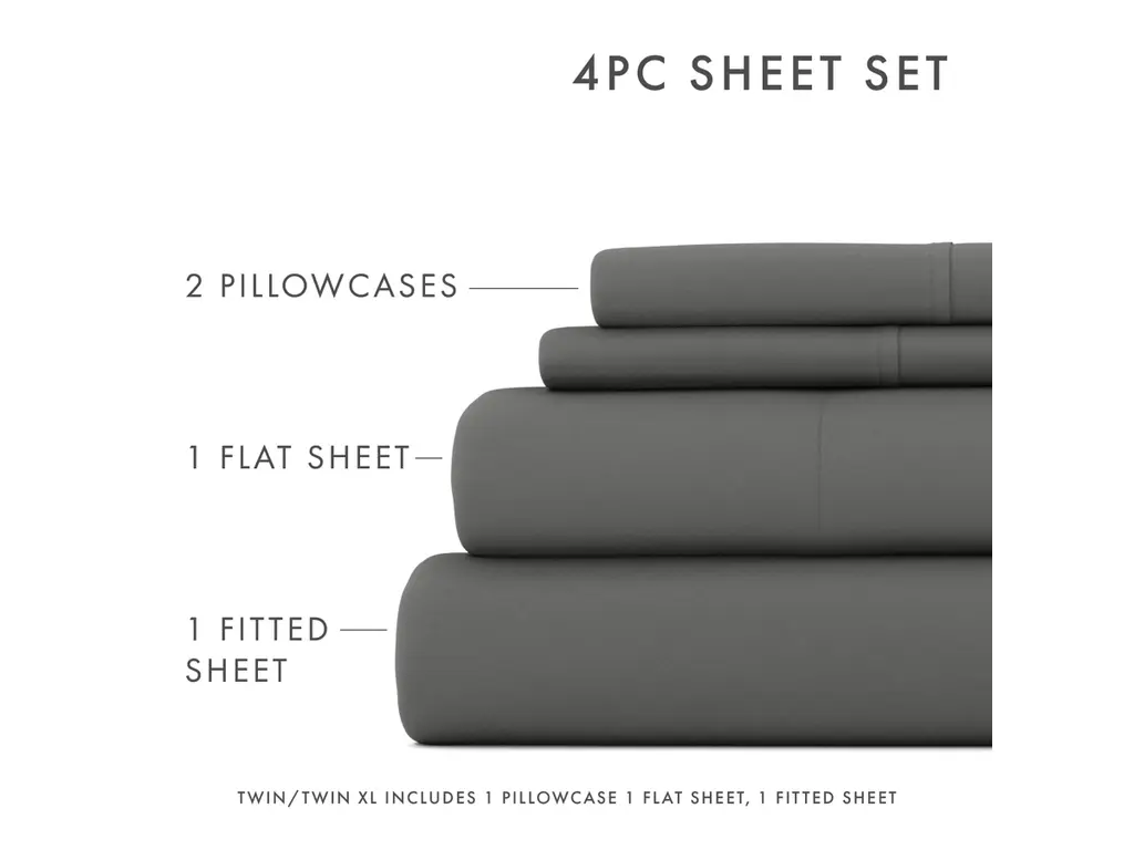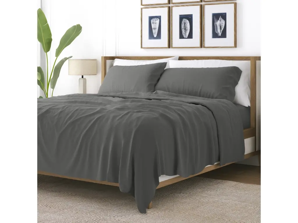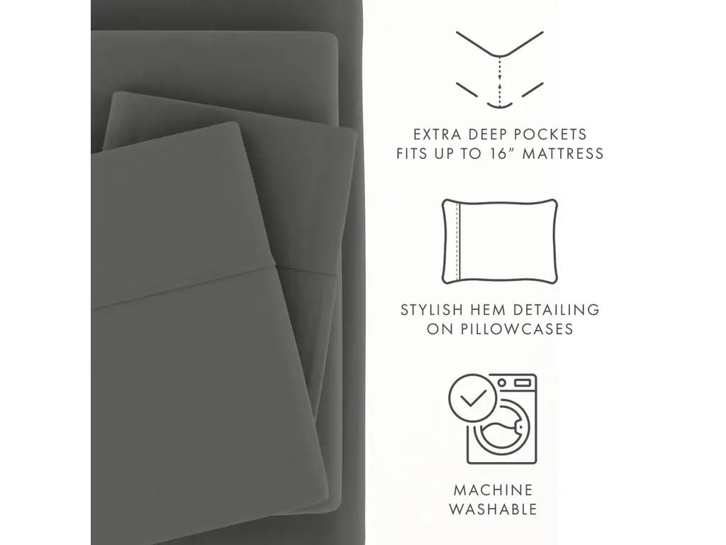 Create your own heavenly haven with this 4-piece California king sheet set. Woven of the finest imported double-brushed yarns for a new level of indulgence and breathability, soft-to-the-touch microfiber will stay smooth and wrinkle free for years of easy-care comfort. Available in a variety of coordinating colors for an irresistibly luxurious impression.