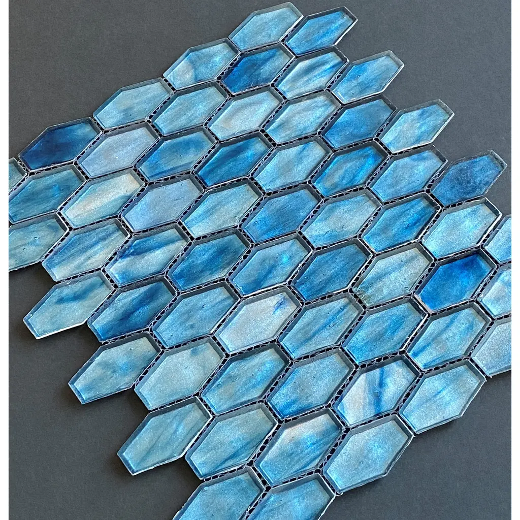 Iridescent 1 1/4" X 2" Long Hexagon Glass Tile - Case (10 Sheets) - Cobalt Blue
