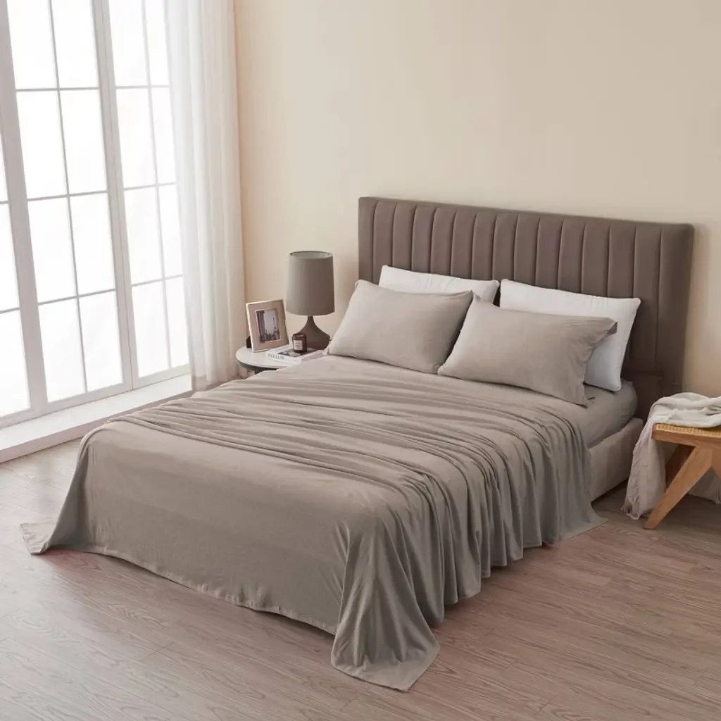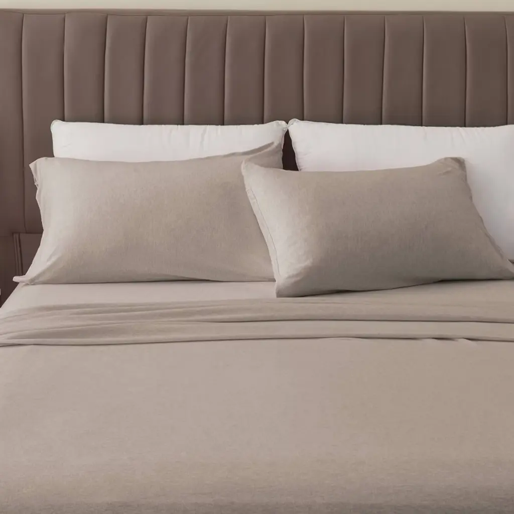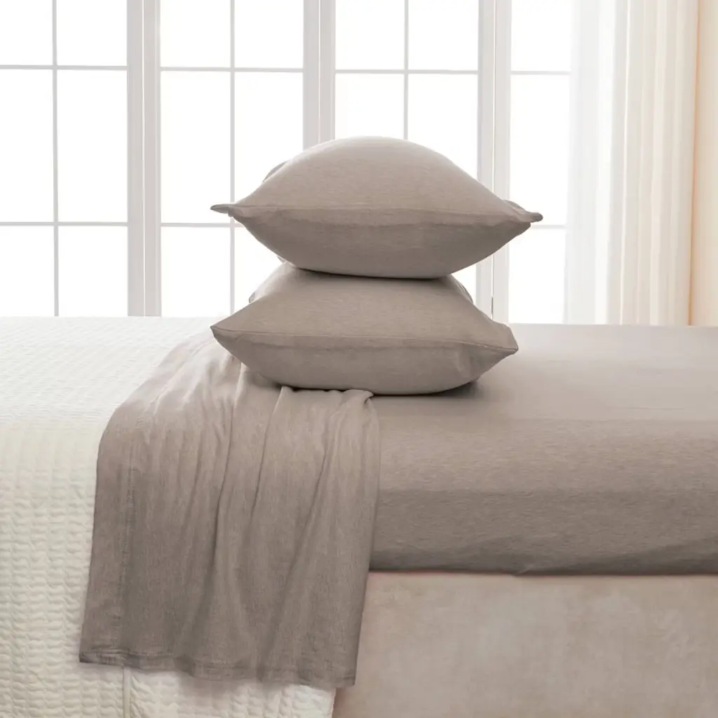 Isla Jade Twin Extra Long Super Soft T-shirt Jersey Knit Sheet Set Heathered Beige