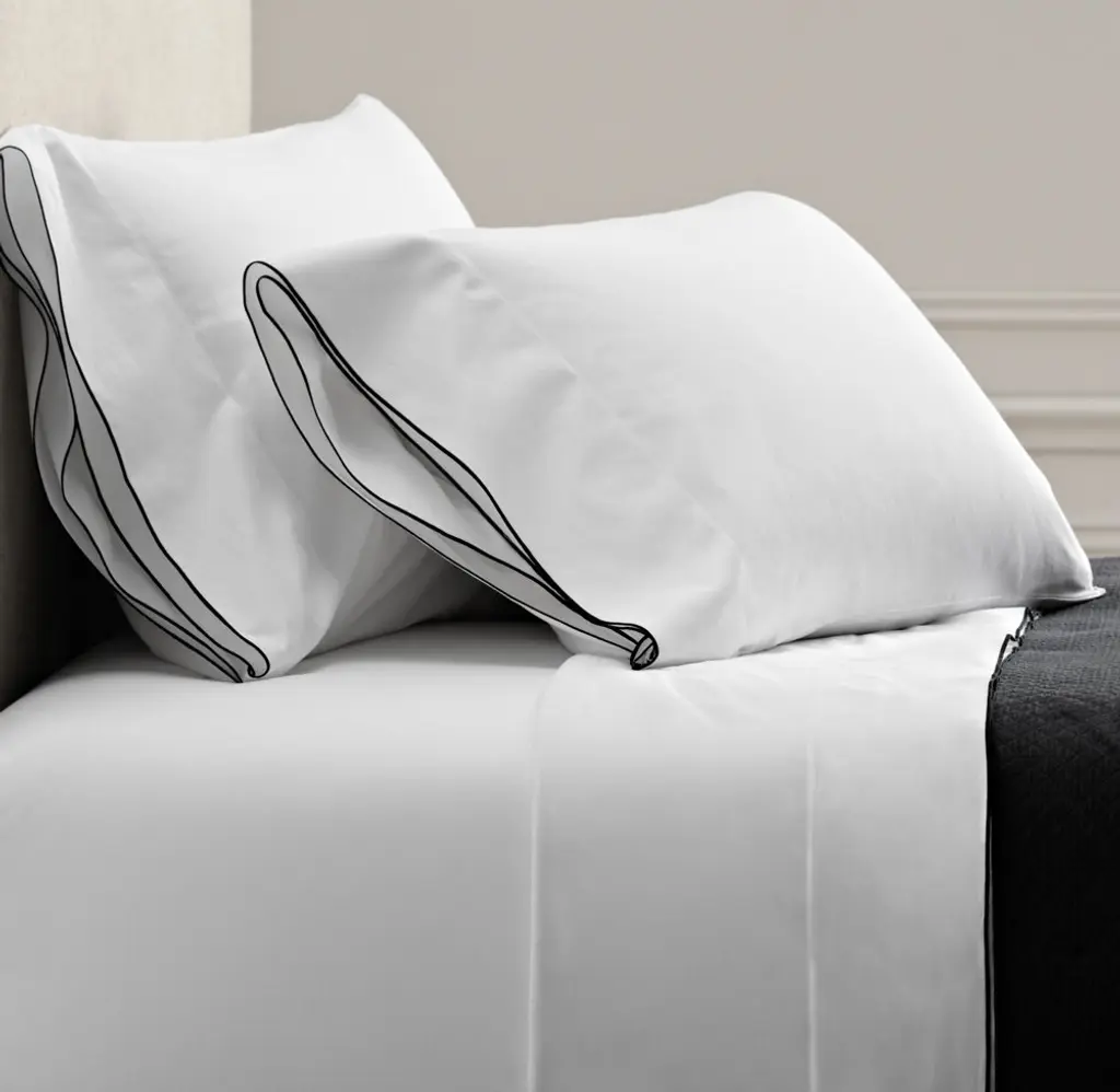 FREE SHIPPING Designed for us by acclaimed Italian linen maker Carlo Bertelli, master tailors craft our bedding from the finest long-staple cotton for extraordinary softness and unparalleled comfort. Contemporary yet timeless, the pristine white sheets are carefully finished with double flanges, each edged with satin stitching for a sophisticated touch of color and understated detail. As head of his family's famed atelier in Florence, Carlo Bertelli honors the Italian art and craft of producing the world's finest linens. A third-generation textile master, Bertelli's passion for artisanal Italian craftsmanship melds old-world tradition with modern innovation to create impeccably tailored bedding with unsurpassed luxury.