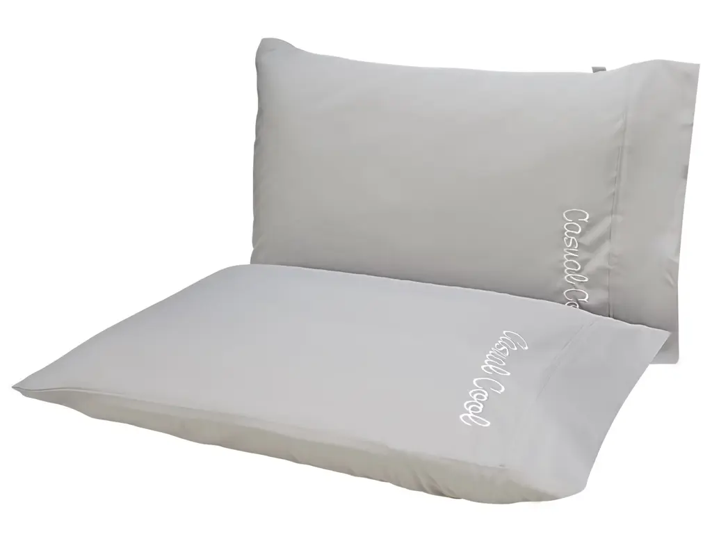 Casual Cool sheets help transform your bedroom into a sleep retreat. Patented Coolpass Technology delivers a breathable comfort and quality that make you want to stay in bed all day. Generously sized, so these sheets are made to fit even the thickest mattress. Every detail has been captured, down to the enveloped pillowcase to ensure your pillow doesn’t slide out. Available in Crème White or Grey.
