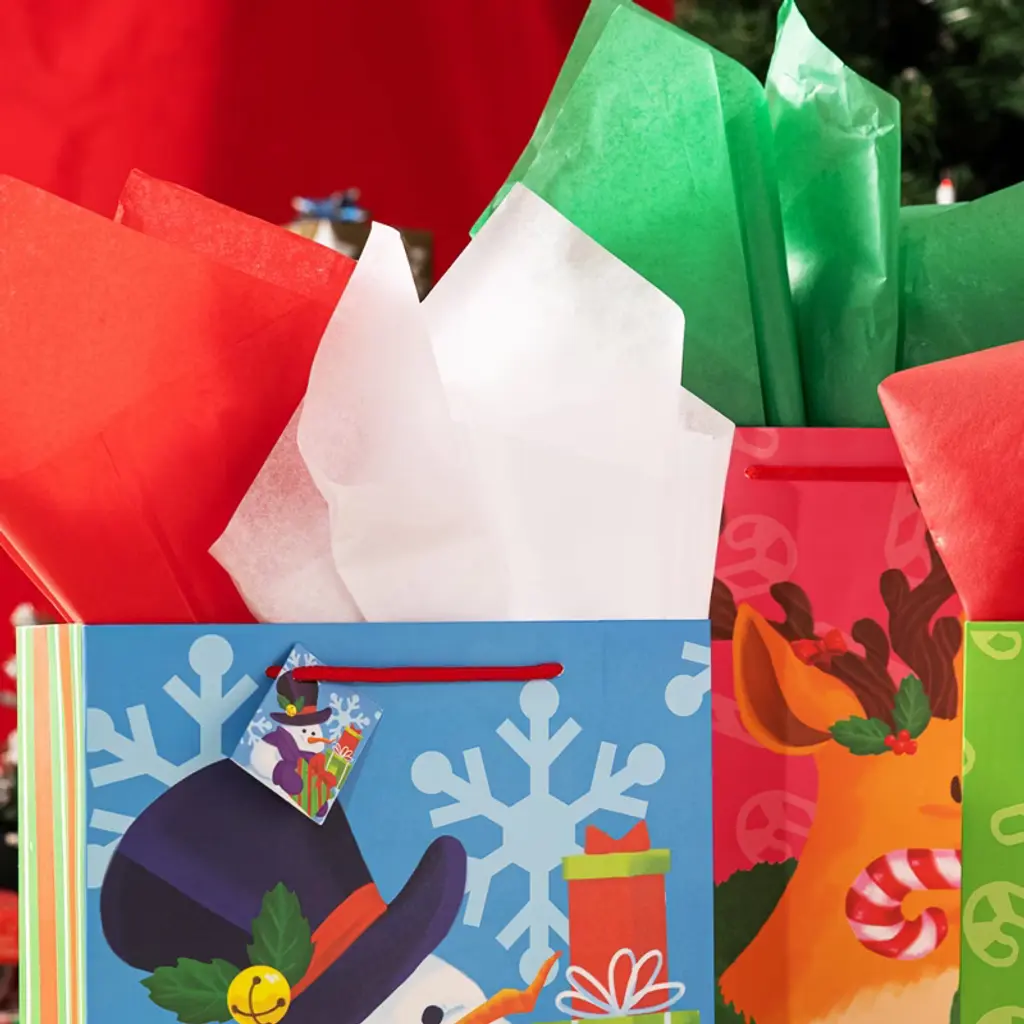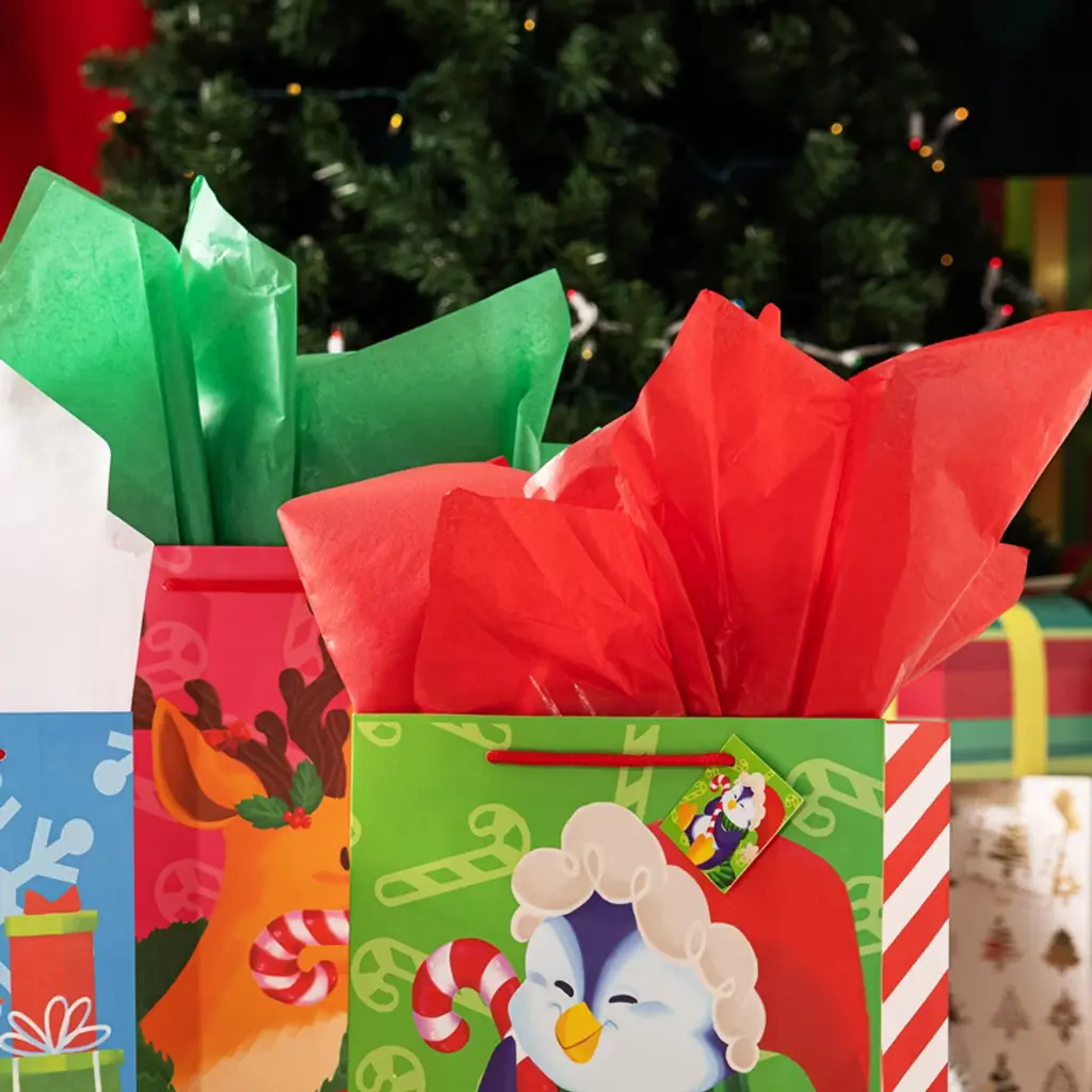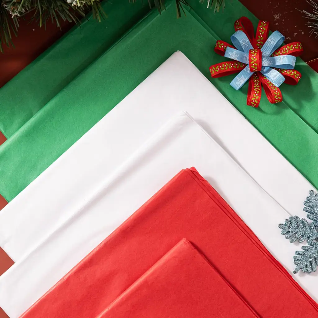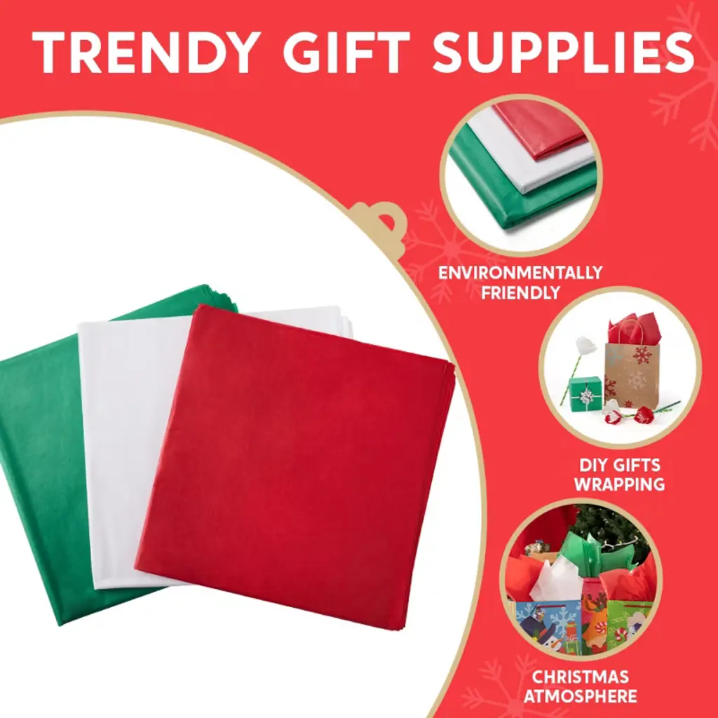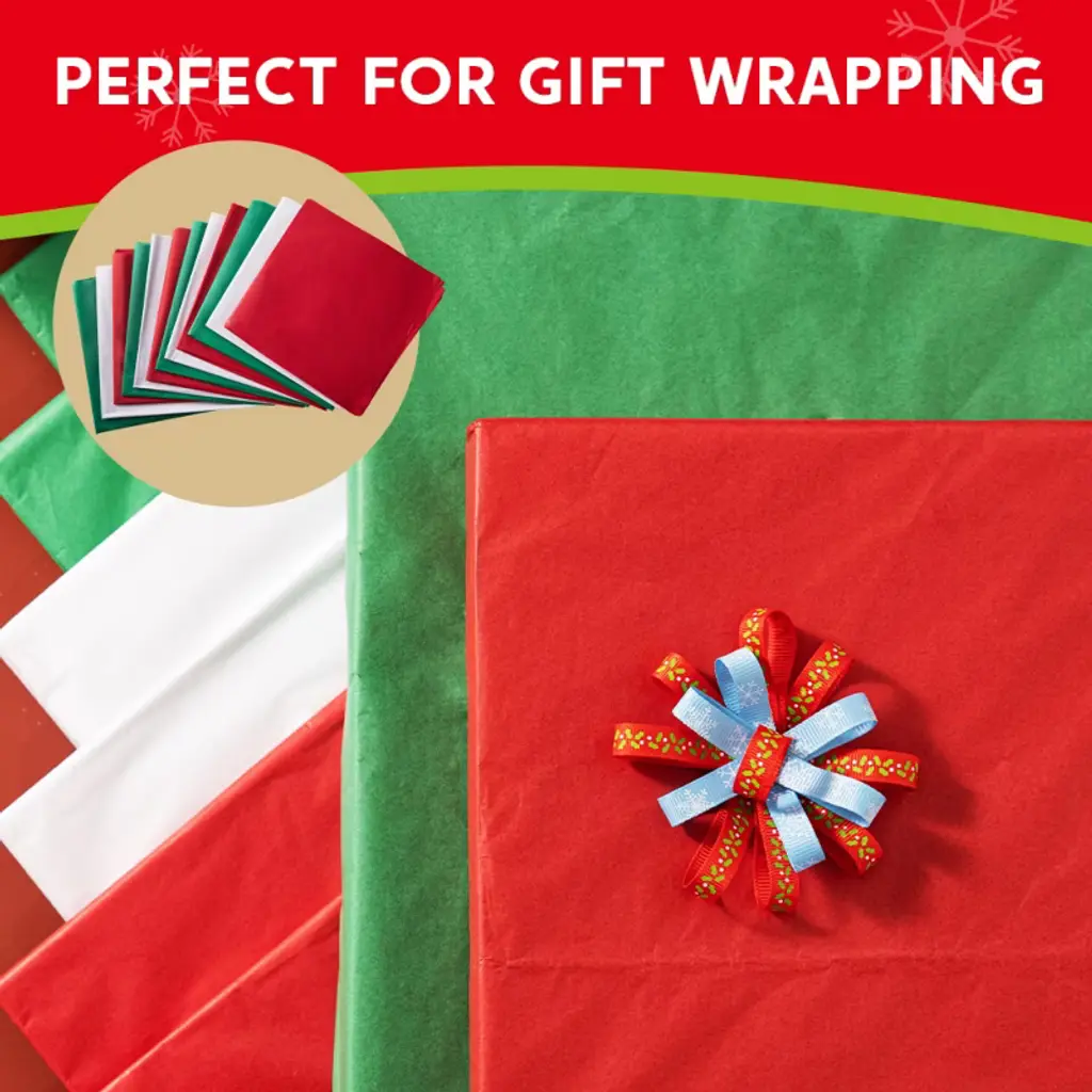 🎄 Wrap Your Gifts in Holiday Magic with Our Premium Christmas Tissue Paper. Make this Christmas extra special with our jumbo-value pack of 36 sheets of festive tissue paper. You’ll get 12 vibrant red, 12 merry green, and 12 crisp white sheets, each measuring a generous 20 x 20 inches, perfect for wrapping gifts of all shapes and sizes. Crafted from high-quality, 100% recyclable paper, our tissue is not only planet-friendly but also strong, soft, and perfect for making every present look beautiful. Whether you're wrapping gifts, stuffing stockings, decorating your tree, crafting holiday decor, or adding flair to wine bottles and party settings, this gift wrap paper brings Christmas cheer everywhere! Get ready to wrap, craft, and celebrate in style.🎁✨