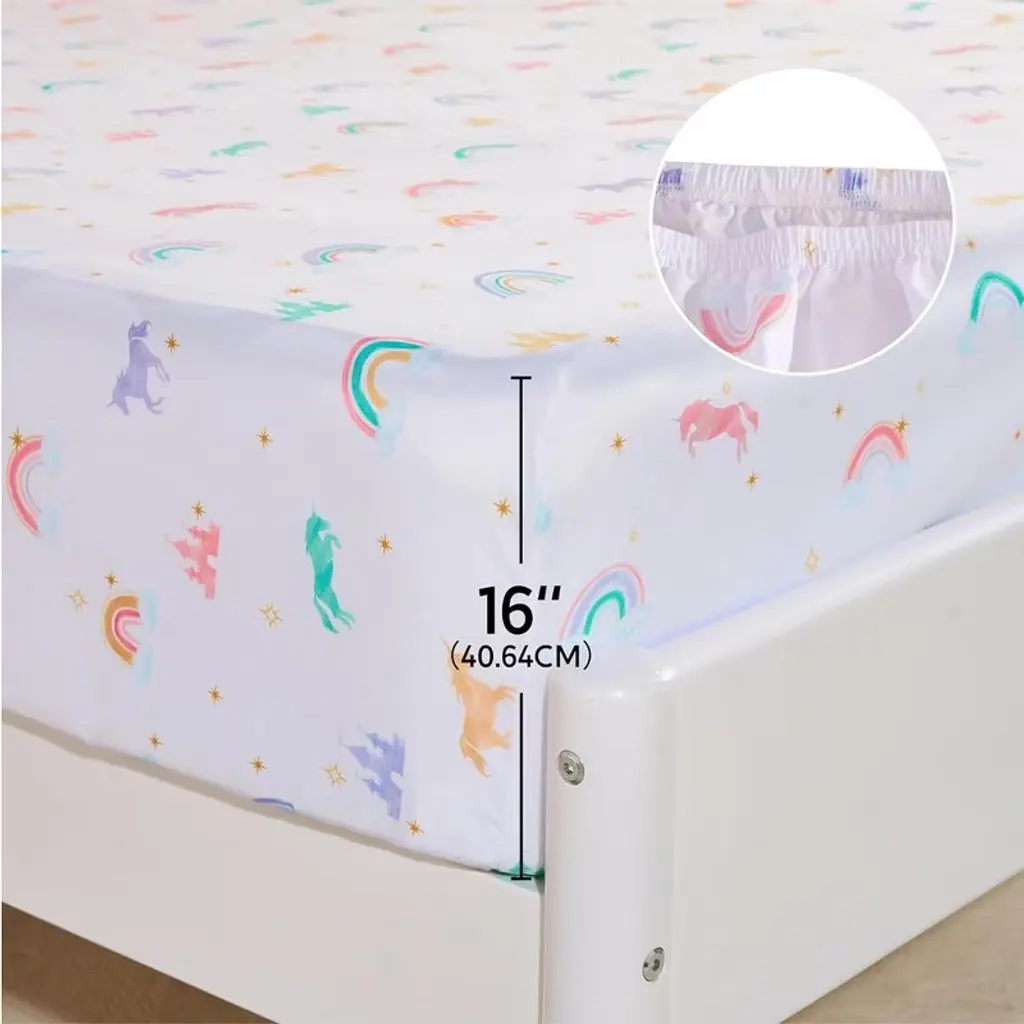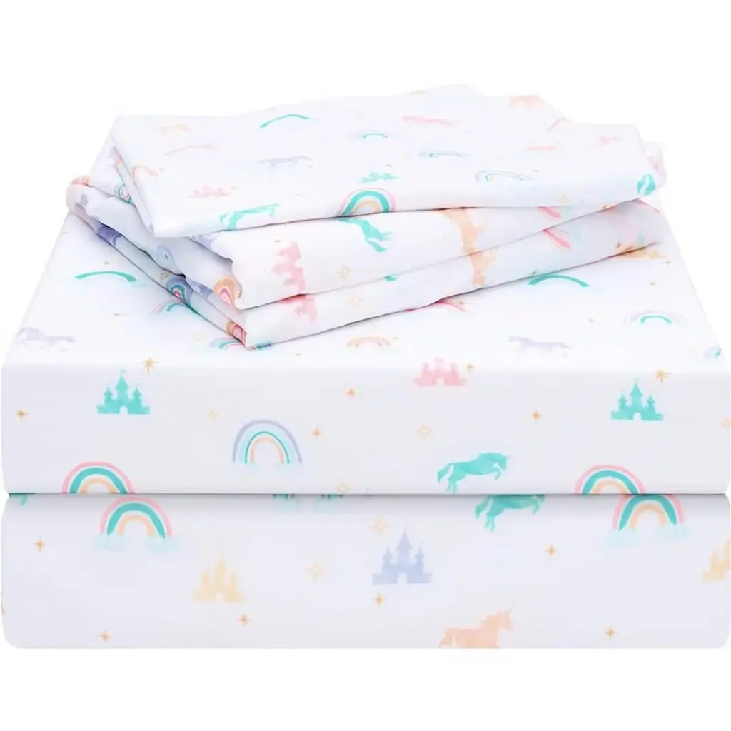 Joyfy Kids' Bed Sheet Set - Soft, Safe & Fun! Premium 4-piece microfiber set (fitted sheet, flat sheet, 2 pillowcases) featuring vibrant unicorn, rainbow & tool designs kids love. OEKO-TEX certified, ultra-soft, breathable for year-round comfort. Deep-pocket fitted sheet stays secure, while easy-care fabric resists fading/pilling. Perfect for full-size toddler beds! *(Includes: 54"x75"+16" fitted sheet, 81"x96" flat sheet, 20"x30" pillowcases)*
