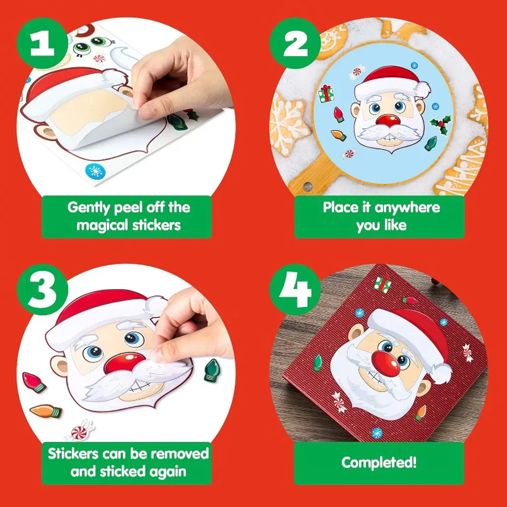Joyfy Kids Party Favor Supplies Craft, 24 Pcs Make-a-face Sticker Sheets For Christmas Elf, Santa, Snowman, Penguin And Polar Bear