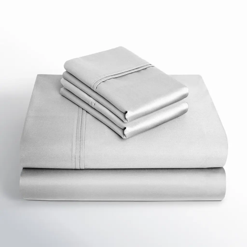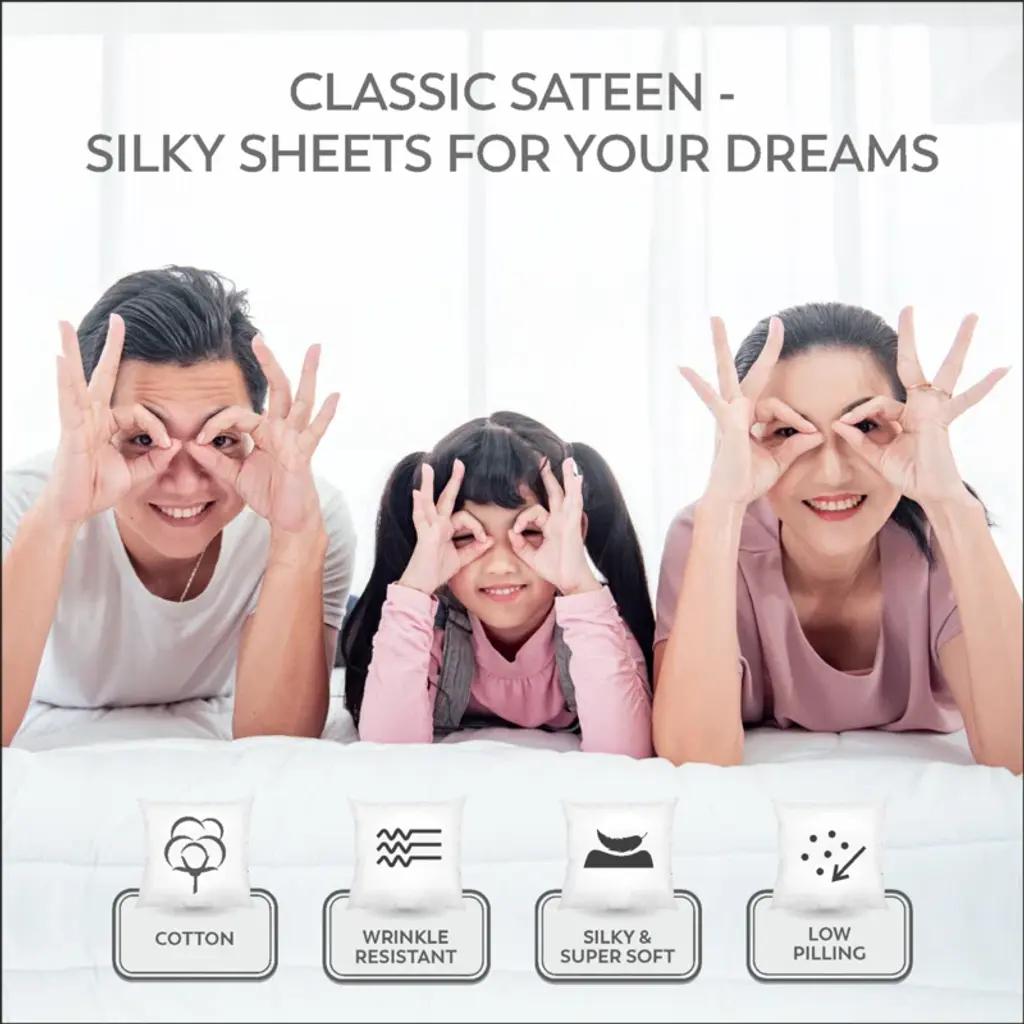Add color and luxury to your bedroom decor with this sumptuous deep pocket sheet set. The rich sheets are crafted from 100-percent cotton with 400 thread count, the lush sateen weave adding a sleek feel and lovely sheen to the beautiful setting. The fully elasticized fitted sheet features extra deep pockets that will embrace extra high mattresses so your bedding stays neat and cozy.