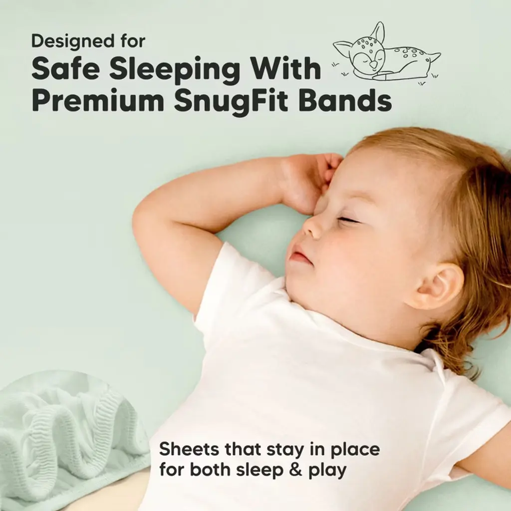 Set your baby up for a comfortable and relaxing nap and play time in their playpen/pack and play playard with the Fitted Mini Crib Sheets. Featuring the premium viscose derived from bamboo, which is highly breathable and temperature-regulating, keeping your baby comfortable all day long. Comes beautifully packaged in a kraft gift box, making it a cute, thoughtful, and useful baby gift for new parents.