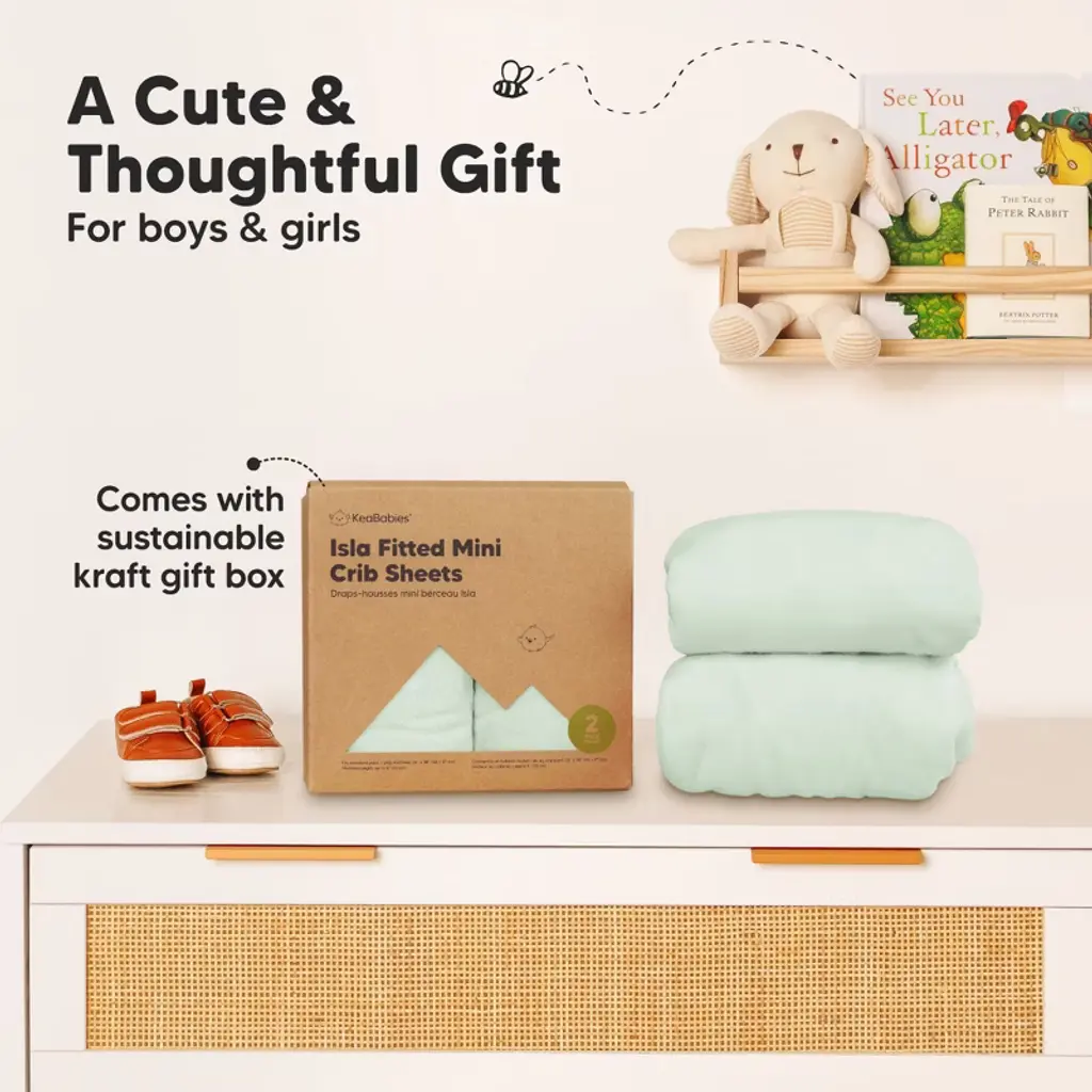 Keababies 2-pack Isla Mini Crib Sheets, Pack And Play Sheets Fitted, Pack N Play Sheets, 38x26 Fitted Crib Sheet (Aloe)