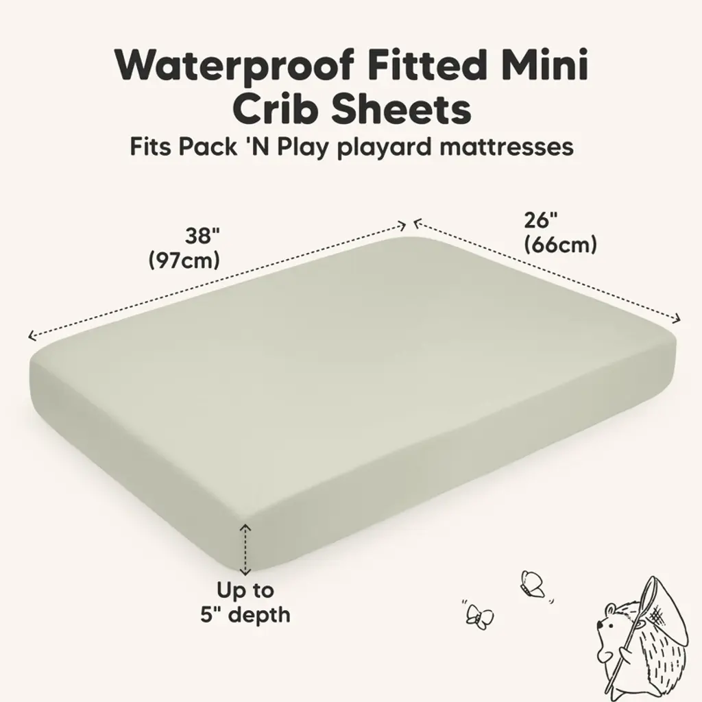 Soothingly comfortable, our Isla Protect+ Mini Crib Sheet is your baby's perfect companion. Sized 38" x 26", it features a waterproof layer to guard against diaper leaks, keeping your baby comfy & your Pack and Play mattress clean! Our Isla Protect+ Mini Crib Sheet are machine washable and dryer-friendly. An ideal gender-neutral baby registry gift.