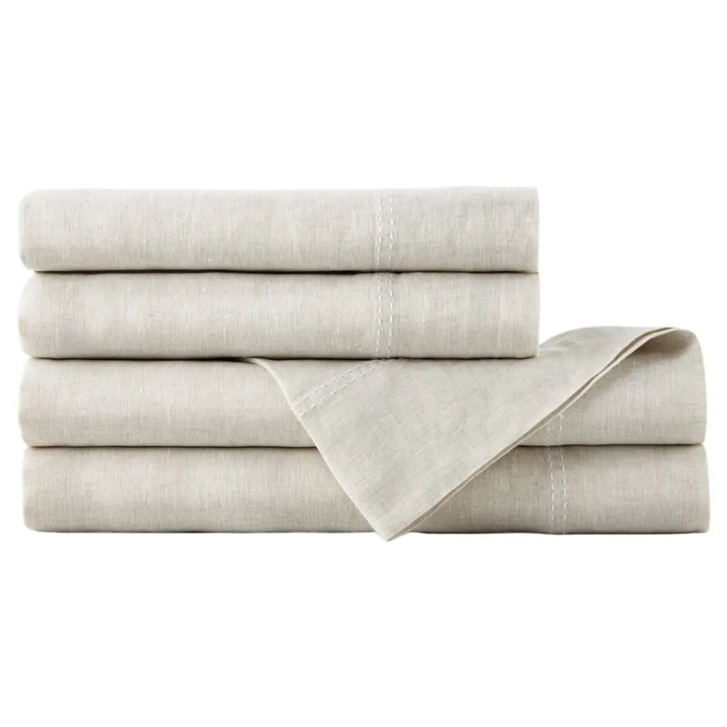 Pom Pom at Home offers superior linens and textiles made with the highest quality natural fibers for that relaxed, lived-in feel. The Kelly collection offers timeless bedding with a flourish, featuring delicately embroidered scalloping. With a matching trim on the top sheet and pillowcases, this sheet set drapes your bed with tailored charm.