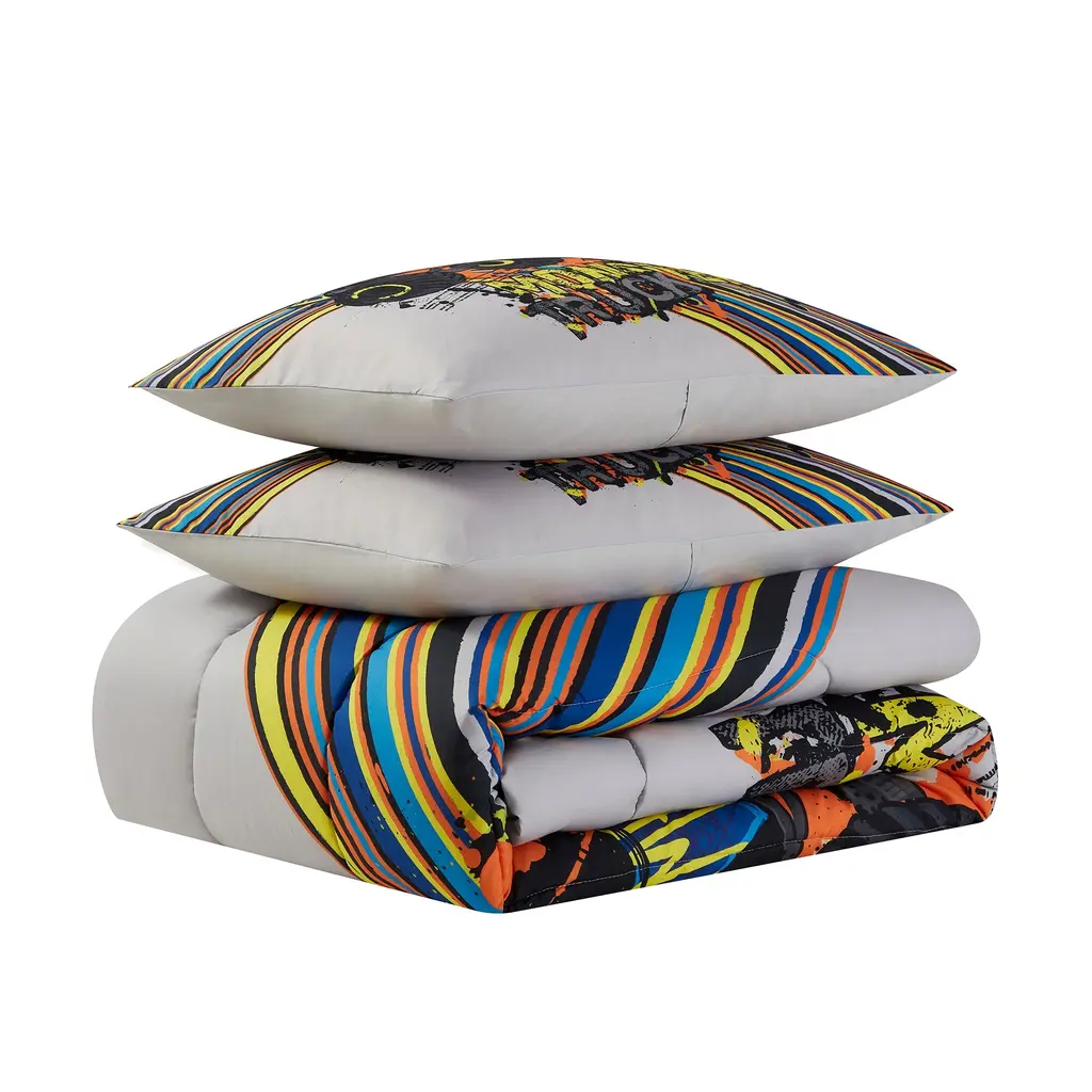Kids will dig our Monster Truck Comforter and Sheet Set. Featuring a vibrantly colored Monster Truck design and double brushed microfiber construction, they’ll love to sleep in this ultra soft Monster Truck comforter and sheet set. With the set you will get a 100% Polyester Microfiber & Down Alternative Colorful truck print comforter with matching pillow shams, and a gorgeous blue sheet set with monster trucks that will dress up your childs bed without breaking the bank. In ultra soft microfiber materials and gorgeous bold colors, this set is going to ensure your kids room is fashionably decorated.Comforter:Sheet Set: Sizes: Care Instructions: