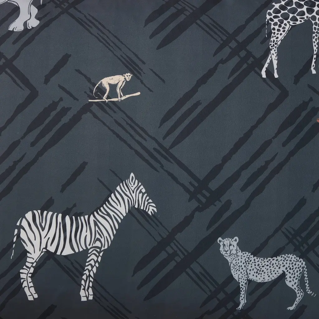 Add a touch of adventure to bed time with our Safari themed Comforter and Sheet Set. Featuring a assorted wild animals on a charcoal gray background and double brushed microfiber construction, they’ll love to sleep in this ultra soft comforter and sheet set. With the set you will get a 100% Polyester Microfiber & Down Alternative safari print comforter with matching pillow shams, and a gorgeous taupe and white sheet set in a jungle branch pattern that will dress up your childs bed without breaking the bank. In ultra soft microfiber materials and gorgeous bold colors, this set is going to ensure your kids room is fashionably decorated.Comforter: Sheet Set: Sizes: Care Instructions: