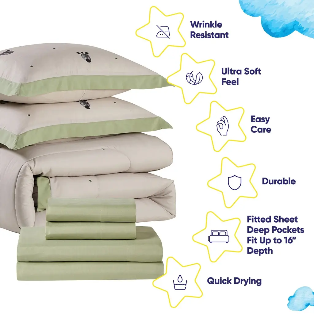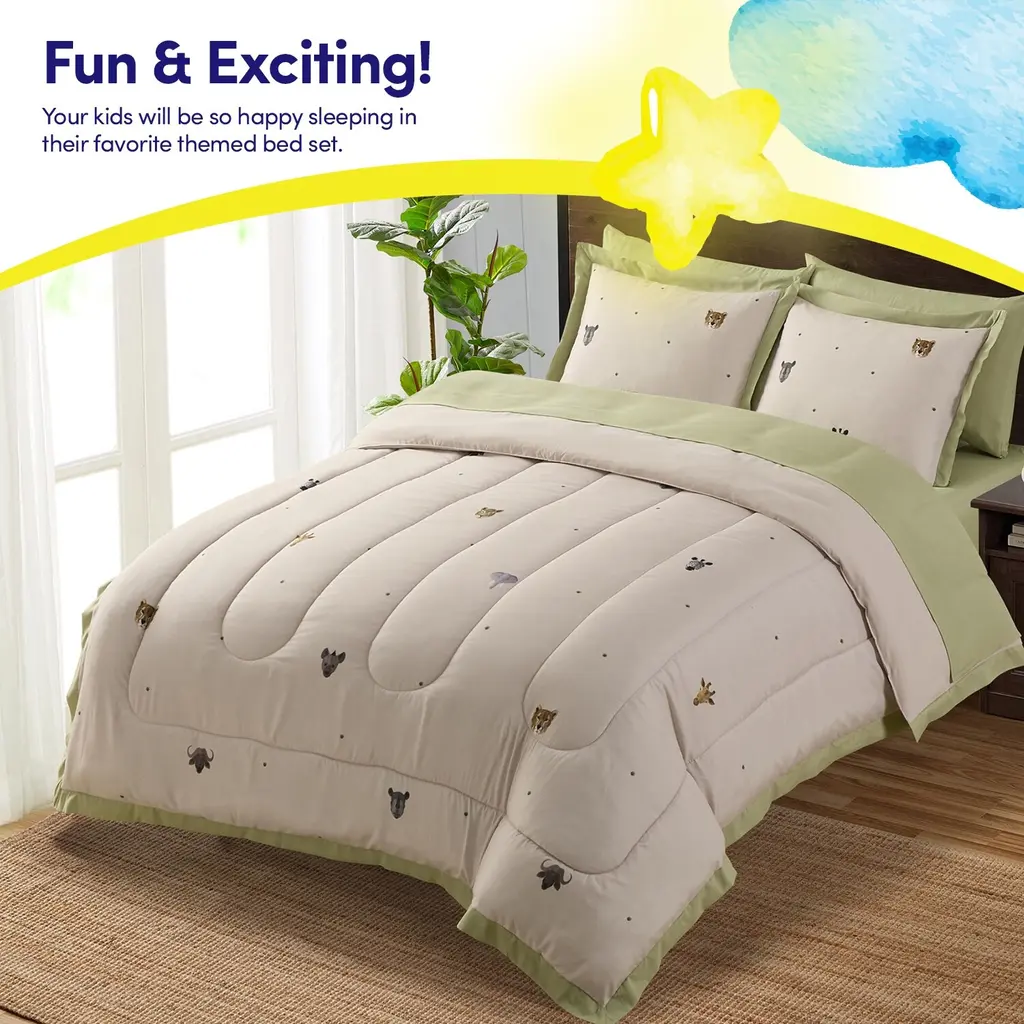 Bring warmth and charm to your child's bedroom with our Savana Animal-Printed Kids Microfiber Bed in a Bag Set! Featuring a delightful pattern of cute animal faces, this bedding set is perfect for creating a playful yet cozy atmosphere. Crafted from ultra-soft microfiber, it offers durability, easy care, and year-round comfort.Make bedtime extra special with our Savana Animal-Printed Kids Microfiber Bed in a Bag Set. Your little one will adore the charming design, and you'll appreciate the high-quality materials and convenience.Order yours today and create a fun, animal-themed bedroom for your child!What's Included:Perfect for kids who love animals, this set will turn their room into a delightful sanctuary.Features You'll Love:Dimensions: