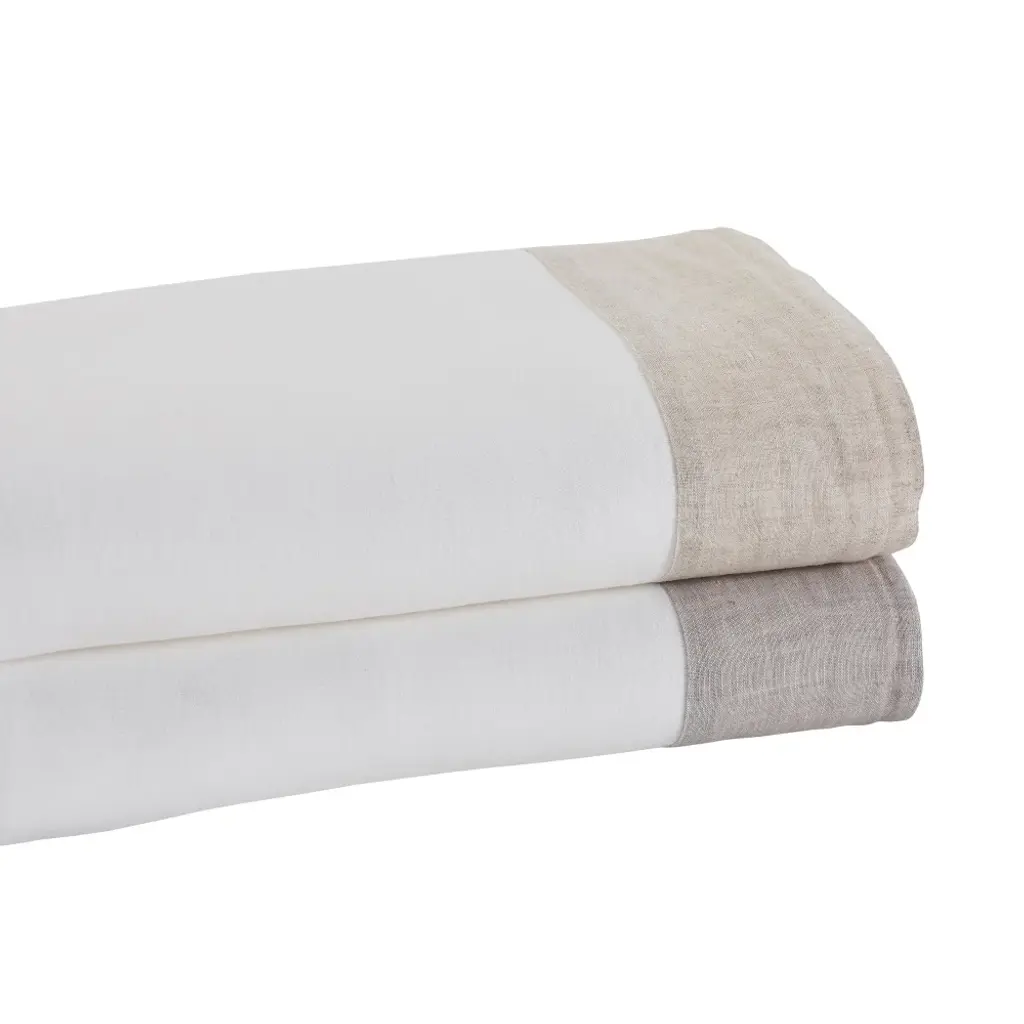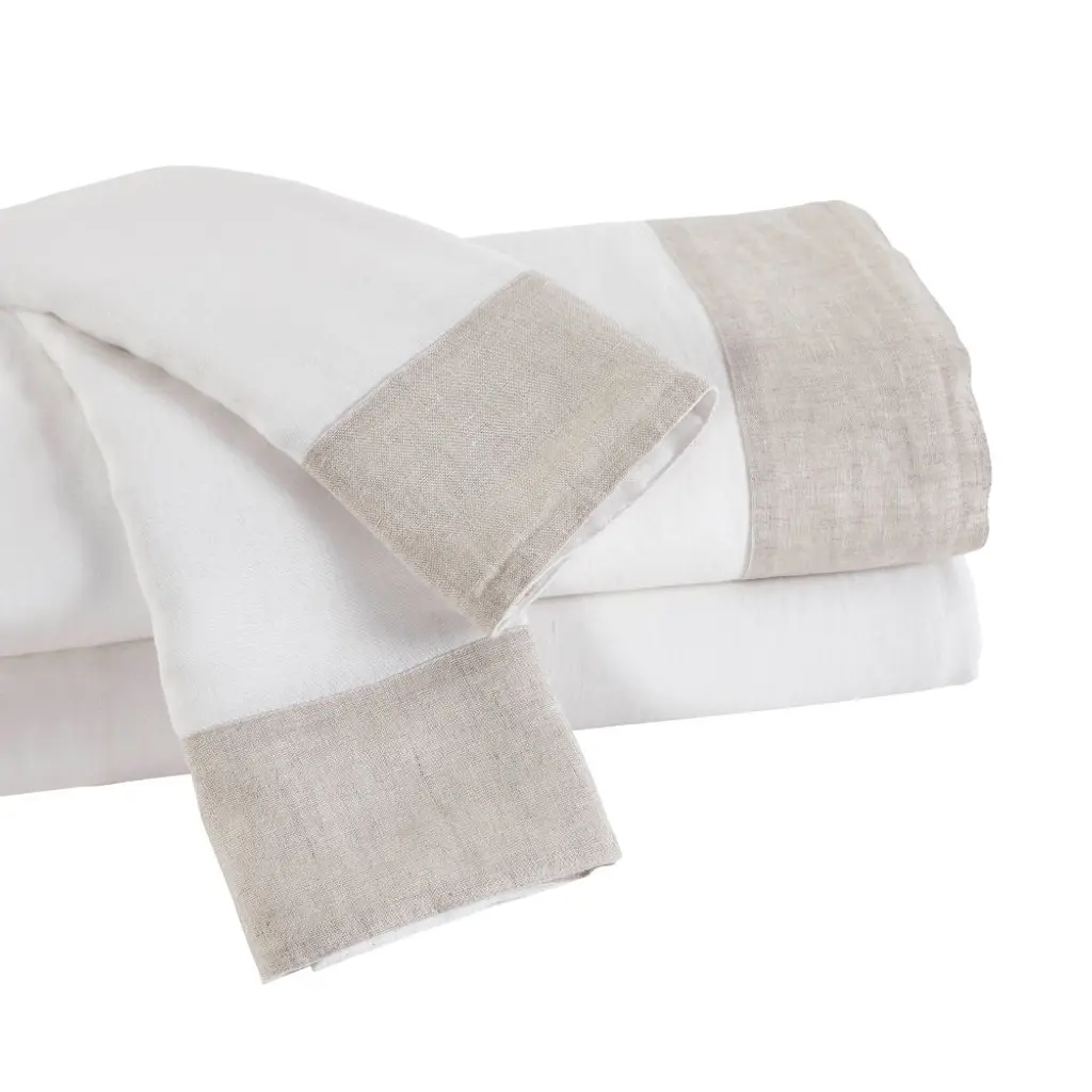 Kyoto Linen White + Beige Sheet Set (Size Options)