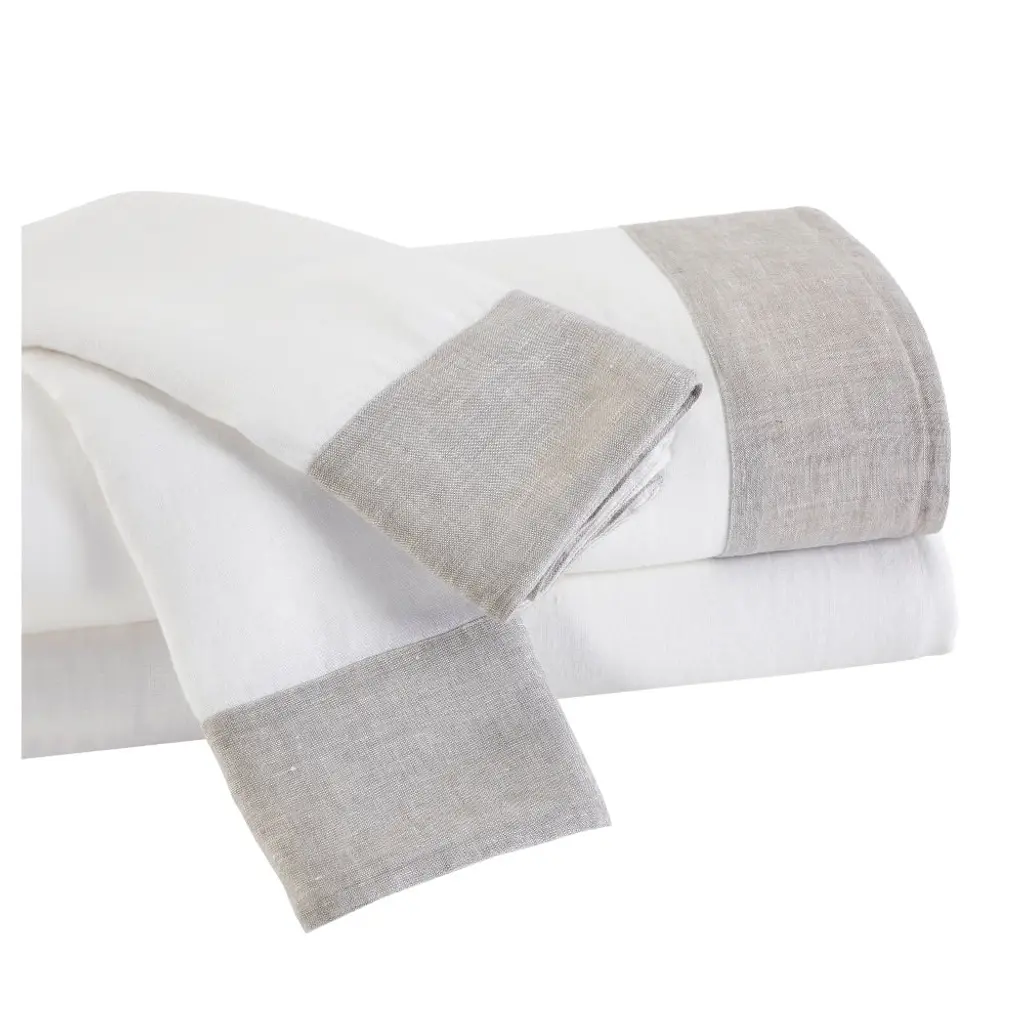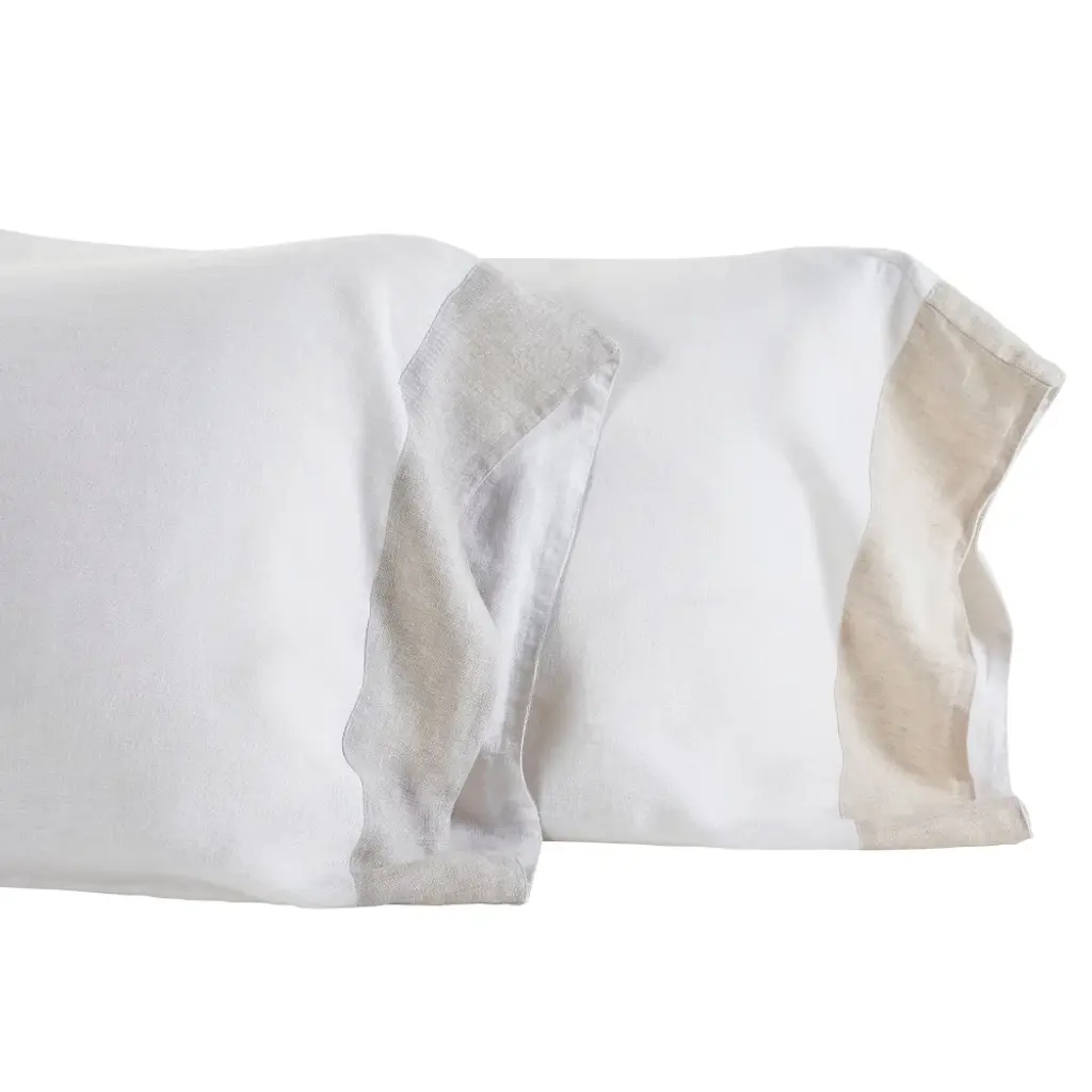 Rest and rejuvenate as you experience the comfort of European linen sheet sets. Offered in crisp white and bordered in soft beige, adding versatility and a dreamy vibe. Woven from the world's finest European flax linen, the Seville collection is pre-washed for incredible softness. Light textured and cool to the touch, this natural-fiber is prized for its durability, breathability and everyday ease.