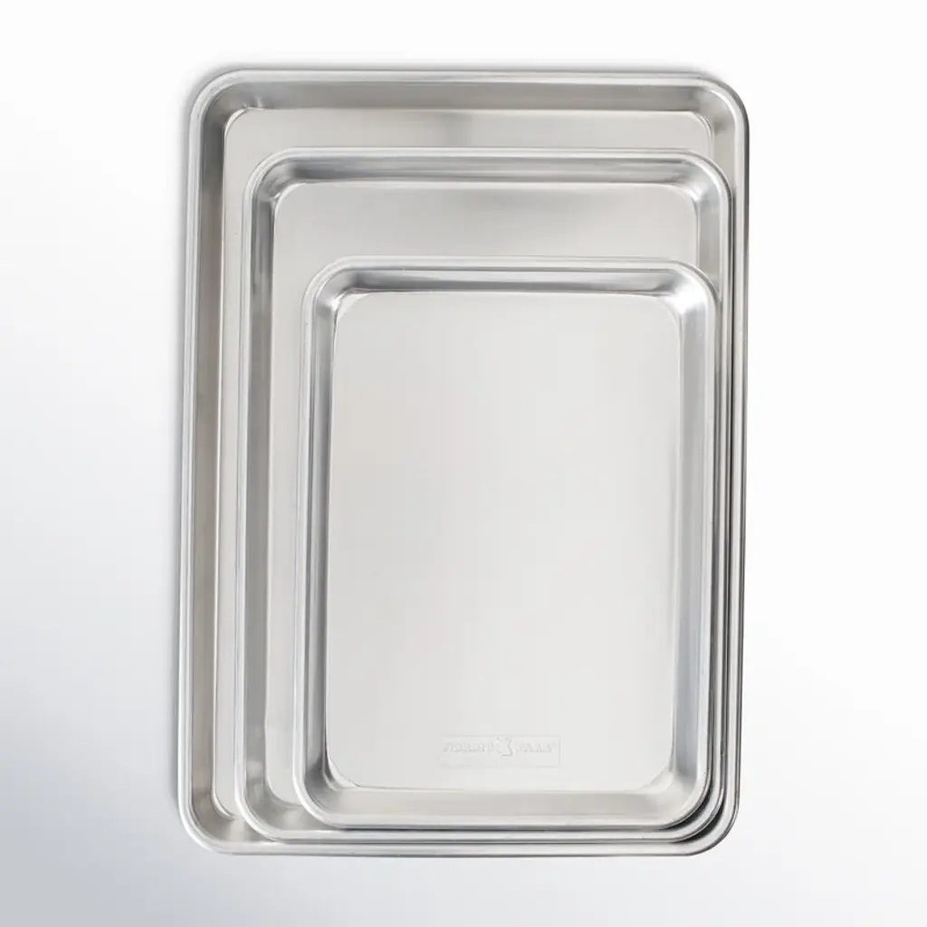 Bake decadent desserts, broil mouthwatering meats, and roast the most delicious vegetables with these baking sheet pans from Last Confection. These professional, 18-gauge natural aluminum sheet pans are what every kitchen needs. From the seasoned restaurant chef, to an at home cooking enthusiast, or even a novice just getting started, these baking sheets are for you! These multi-tasking baking sheets will be the workhorse in any kitchen. Last Confection is your trusted source for professional-grade kitchen bakeware, supplies and accessories that provide long lasting quality at an exceptional value.