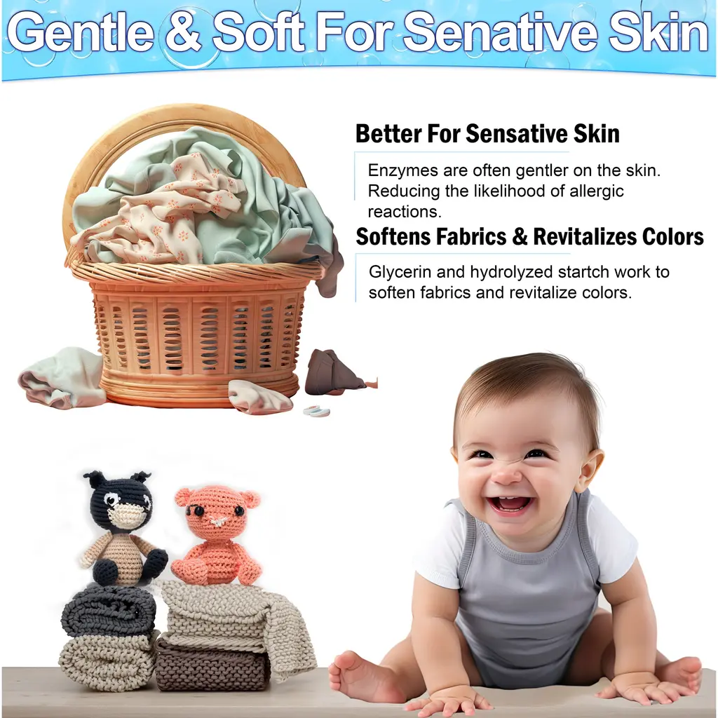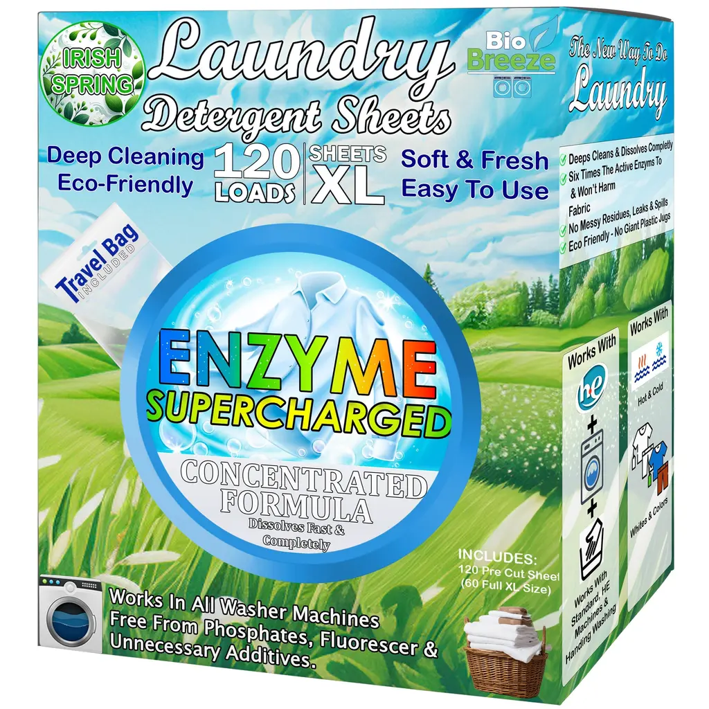 ECO-FRIENDLY, ALLERGY-SAFE LAUNDRY DETERGENT SHEETS: Harness the efficiency of our eco laundry detergent sheets infused with the natural cleaning of plant-based ingredients. Biodegradable and enzyme based to avoid use of harsh chemicals. These laundry detergent sheets offers a green laundry detergent alternative. They are hypoallergenic and dissolve quickly, completely, and effectively in both cold and hot water, ensuring your clothes are not just clean but also fresh. 13 AVAILABLE SCENTS : Fresh Scent: Experience the essence of sun-drenched linens with our Fresh Scent. Lavender Tranquility: Immerse your laundry in the calming, floral embrace of Lavender. Irish Spring : Revitalize your fabrics with the brisk freshness of Irish Spring. Meadow Breeze Freshness: Awaken your senses with Meadow Breeze. Spring Blossom Aroma: Usher in the vibrancy of spring with our Spring Blossom scent, blending the freshness of flax with the subtlety of early bloom florals. Rose Petal Elegance: Envelope your clothes in the luxurious blend of blooming peonies and delicate rose petals. Unscented & Pure: Opt for simplicity with our Scent Free option. Ideal for sensitive skin, these sheets offer effective cleaning with enzyme power. Sheets have a mild smell due to the Enzymes but they have no added fragrances.Ocean Breeze: Experience the refreshing scent of Ocean Breeze with notes of seawater, oranges, and lavender. Venus Blossom: Indulge in the enchanting fragrance of Venus Blossom, where lemon, jasmine, and sandalwood create a sophisticated, floral aroma. Coconut Blossom: Embrace the tropical allure of Coconut Blossom, blending citrus, jasmine, and vetiver for a warm and exotic fragrance. Spring Breeze: Enjoy the crisp and invigorating scent of Spring Breeze, featuring apple, jasmine, and cedar for a fresh and uplifting experience. Modern Gent: Discover the refined elegance of Modern Gent Cologne, combining lemon, jasmine, and amber for a distinguished, masculine fragrance. T-Shirt: Relish the clean and breezy aroma of T-Shirt, with notes of lemon, lavender, and vetiver, perfect for a freshly laundered feel SUPER CONCENTRATED ENZYME ENRICHED STAIN FIGHTING : Fortified with natural enzymes, our detergent sheets deliver superior cleaning performance, even on stubborn stains. They effectively break down dirt, grease, grass stains and odors, leaving your clothes fresh and spotless with each wash. Each enzymatic laundry detergent is hypoallergenic and enzyme-based cleansing perfect for sensitive skin and baby clothes. Normal detergents can have up to 90% water Eliminate the waste and switch to these concentrated & mess free detergent sheets. 70% LARGER SHEETS - MONEY SAVING CLEANING SOLUTION : Measuring 4.5" x 5.5" these sheets are up to 70% larger than other brands. Its 70% larger than Binbata sheets (3 3/4" x 3 7/8"), 66% larger than Kind Laundry sheets (3.5" x 4.20") and 6% bigger than Earth Breeze sheets (4.4" x 4.25"). EFFORTLESS PRE-MEASURED MESS-FREE OPERATION: Simplify your laundry routine with our pre-measured, mess-free laundry washer sheets. No need for measuring cups or fear of spills. FOR ALL WASHING MACHINES, FABRICS, & WATER TEMPATURES - EVEN CARPET CLEANERS : Engineered for compatibility, these detergent sheets deliver impeccable results. From hot and cold water, from standard to HE machines, from everyday garments to specialized delicate fabrics. It's also a great baby detergent.