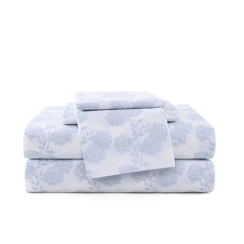 Experience the perfect blend of crisp comfort and timeless style with Laura Ashley's percale sheet sets. Crafted from 100% cotton percale, these sheets offer a cool, breathable feel with a smooth, lightweight texture ideal for year-round use. The durable fabric provides long-lasting softness, while the refined design enhances any bedding ensemble. The twin, twin xl, full, queen, and king sets each include one fitted sheet, one flat sheet, and two pillowcases (one pillowcase for twin and twin xl. Deep pockets on the fitted sheet provide a secure fit, and the high-quality construction offers durability and everyday luxury. Machine washable for easy care