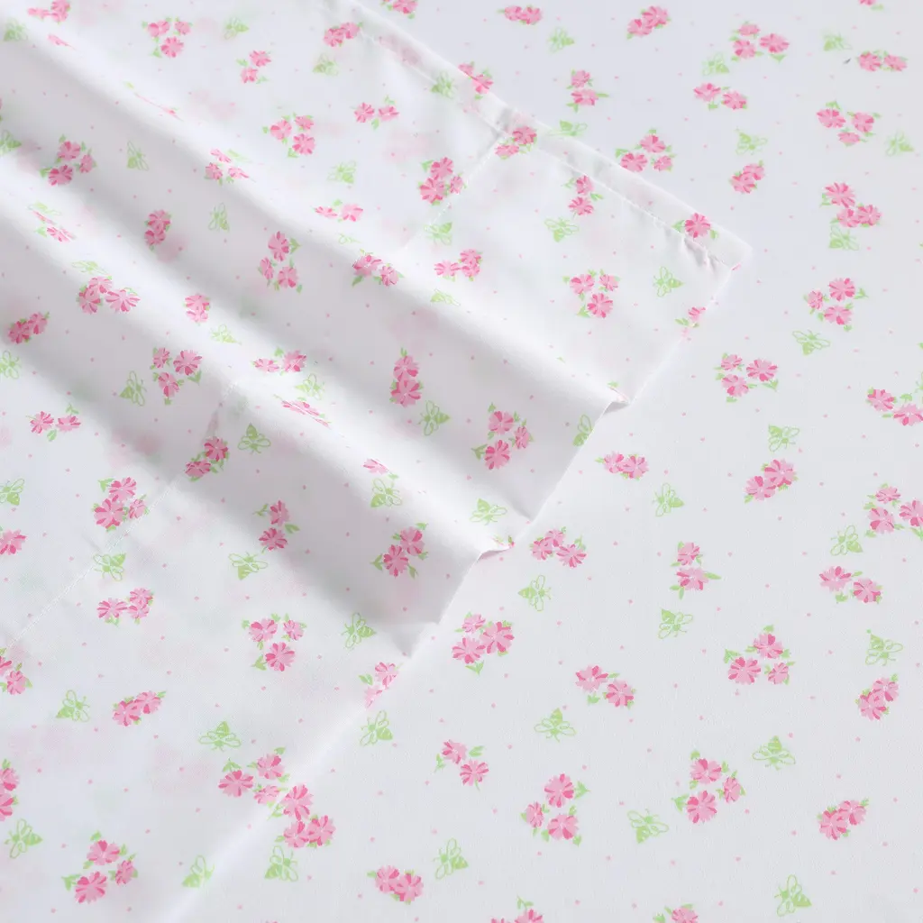 Laura Ashley Kids Cozy Printed Sheet Set. - Busy Bee Pink - Twin Xl