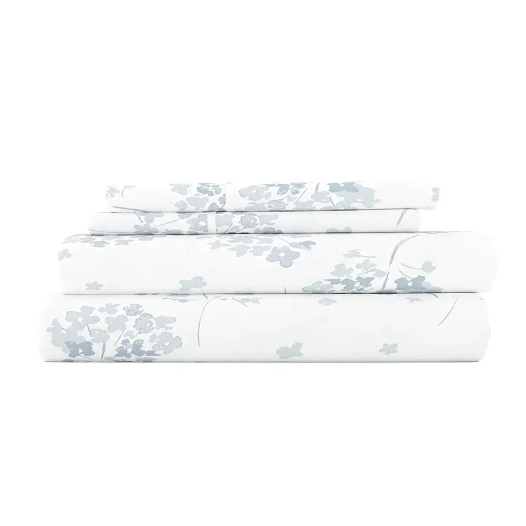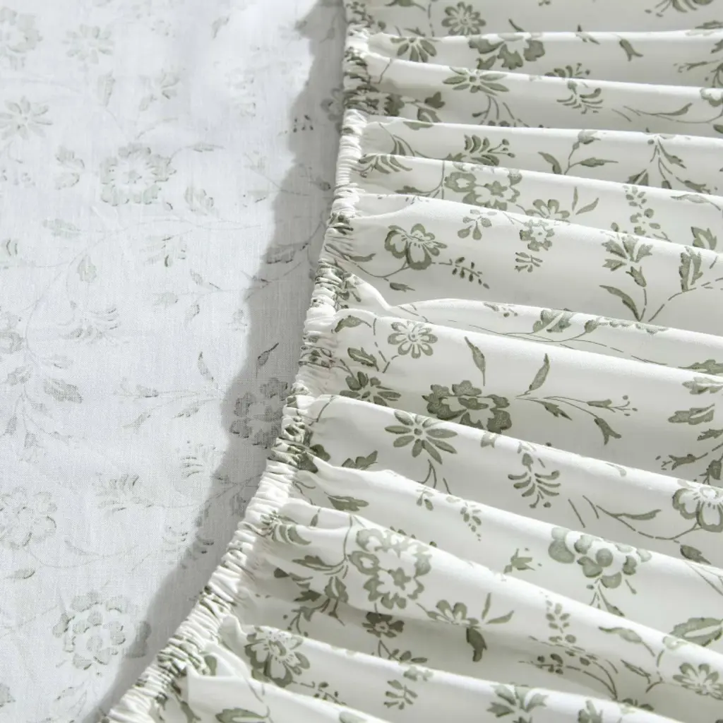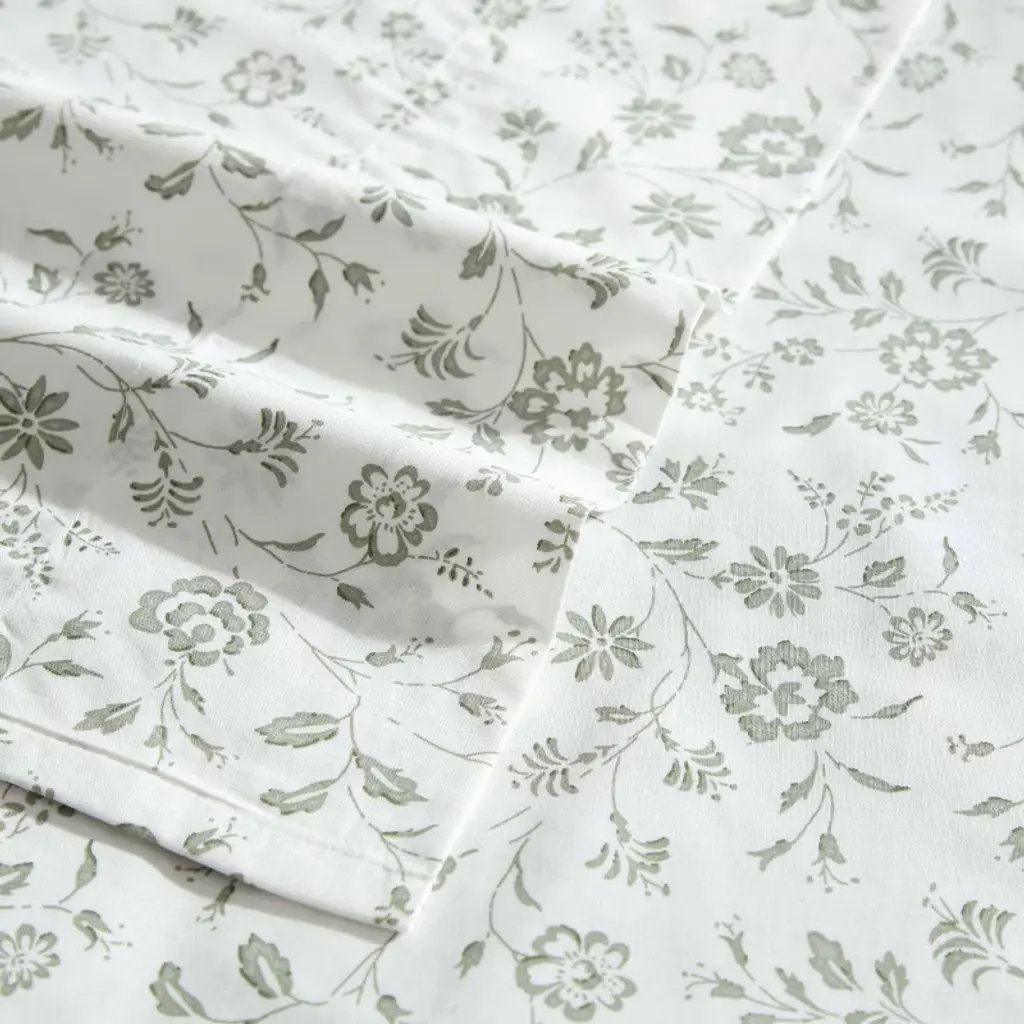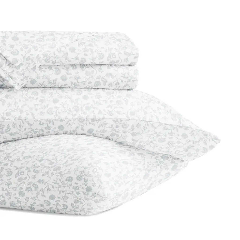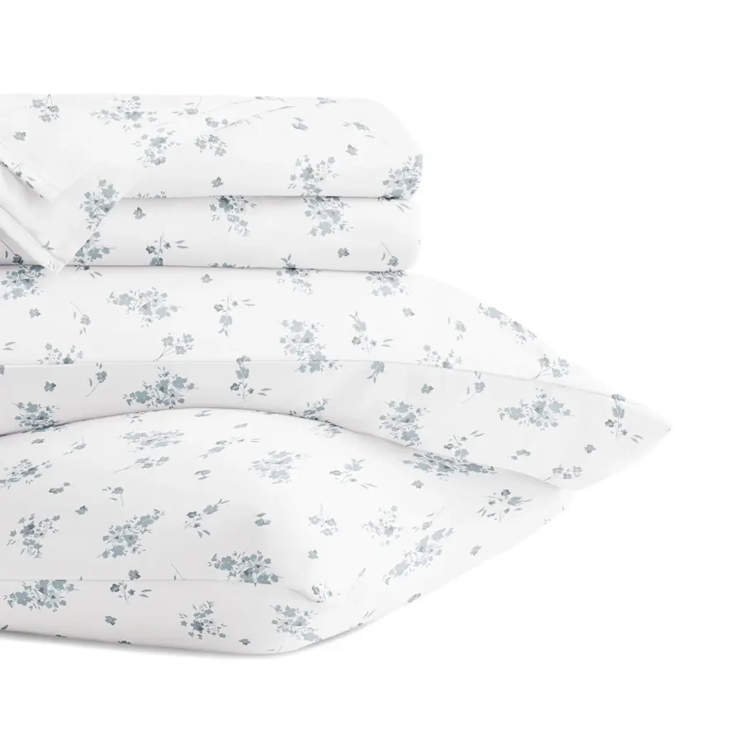 Laura Ashley printed percale sheet sets bring a charming, romantic touch to your bedroom with timeless floral designs in beautiful color palettes. Perfect for mixing and matching with Laura Ashley comforters, duvet covers, or quilts, these sheets effortlessly add a hint of color. Crafted from breathable, lightweight cotton, they are cool to the touch and become softer with each wash for long-lasting comfort. The fully elasticized fitted sheet ensures a secure fit, accommodating mattresses up to 18" deep for queen and king (16" for twin, 17" for full). Each machine washable set includes one flat sheet, one fitted sheet, and two pillowcases (one for twin and twin xl sizes) for a perfectly polished look.