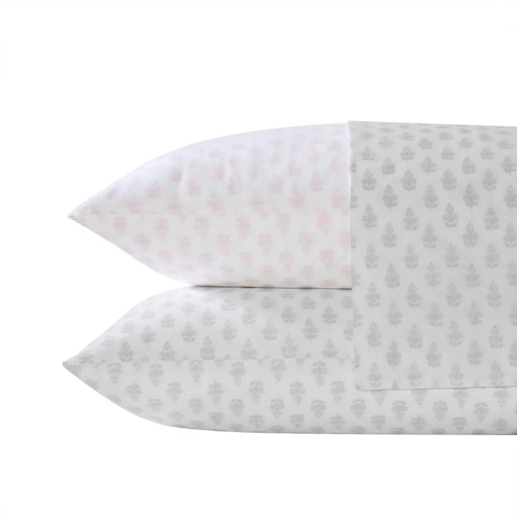 Introducing the Laura Ashley Washed Percale cotton sheets – an exquisite blend of comfort and durability. Immerse yourself in the soft pink floral Francesca sheets, thoughtfully crafted sheets bring a classic yet vintage feel, giving the pattern romantic and feminine touch. Our premium Washed Percale cotton ensures a luxuriously soft and smooth feel against your skin, creating a haven for restful nights and Blissful Dreams. The fabric undergoes a special washing process to enhance its natural softness, providing a relaxed and inviting feeling every time you slip into bed. Designed with the iconic Laura Ashley touch. All sheet sets are available in a variety of sizes, ensuring a perfect fit for any mattress. The deep pockets and elasticized edges guarantee a secure fit, preventing any annoying slipping or bunching, allowing you to enjoy a consistently smooth sleeping surface. In addition to its aesthetic appeal, these sheets are easy to care for. The durable cotton fabric maintains its quality even after numerous washes, ensuring longevity and continued softness. The set includes a fitted sheet, a flat sheet, and matching pillowcases (one pillowcase in twin), creating a cohesive look for your bed. Transform your bedroom into a coastal sanctuary with the new Laura Ashley Washed Percale sheets, available in multiple designs. Pair with your favorite Laura Ashley comforter, duvet cover or quilt set.