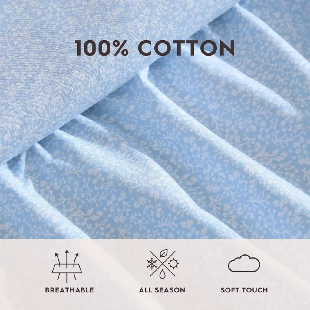 Experience the perfect blend of crisp comfort and timeless style with Laura Ashley's percale sheet sets. Crafted from 100% cotton percale, these sheets offer a cool, breathable feel with a smooth, lightweight texture ideal for year-round use. The durable fabric provides long-lasting softness, while the refined design enhances any bedding ensemble. The twin, twin xl, full, queen, and king sets each include one fitted sheet, one flat sheet, and two pillowcases (one pillowcase for twin and twin xl. Deep pockets on the fitted sheet provide a secure fit, and the high-quality construction offers durability and everyday luxury. Machine washable for easy care