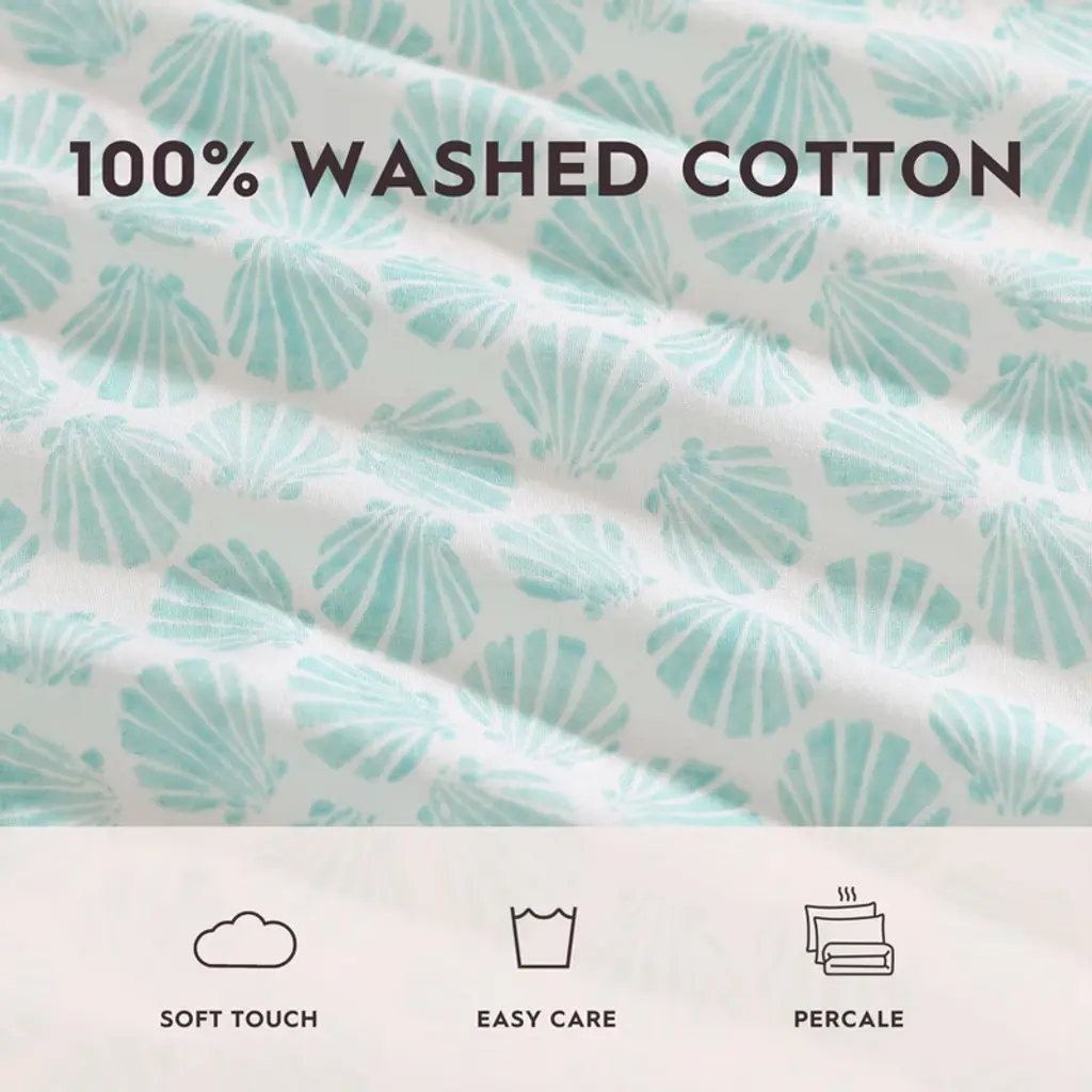 Introducing the Laura Ashley washed percale cotton sheets – an exquisite blend of comfort and durability. immerse yourself in the tranquility of coastal living with these thoughtfully crafted sheets that bring the essence of the shore into your bedroom. our premium washed percale cotton ensures a luxuriously soft and smooth feel against your skin, creating a haven for restful nights and blissful dreams. The fabric undergoes a special washing process to enhance its natural softness, providing a relaxed and inviting feeling every time you slip into bed. designed with the iconic Laura Ashley touch, these bed sheets introduce a coastal-inspired theme to your home. Dive into a world of soothing hues, delicate seashell patterns, and breezy designs that evoke the serene beauty of the seaside. all sheet sets are available in a variety of sizes, ensuring a perfect fit for any mattress. The deep pockets and elasticized edges guarantee a secure fit, preventing any annoying slipping or bunching, allowing you to enjoy a consistently smooth sleeping surface. in addition to its aesthetic appeal, these sheets are easy to care for. The durable cotton fabric maintains its quality even after numerous washes, ensuring longevity and continued softness. The set includes a fitted sheet, a flat sheet, and matching pillowcases (one pillowcase in twin), creating a cohesive look for your bed. transform your bedroom into a coastal sanctuary with the new Laura Ashley washed percale sheets, available in multiple designs. Pair with your favorite Laura Ashley comforter, duvet cover or quilt set.