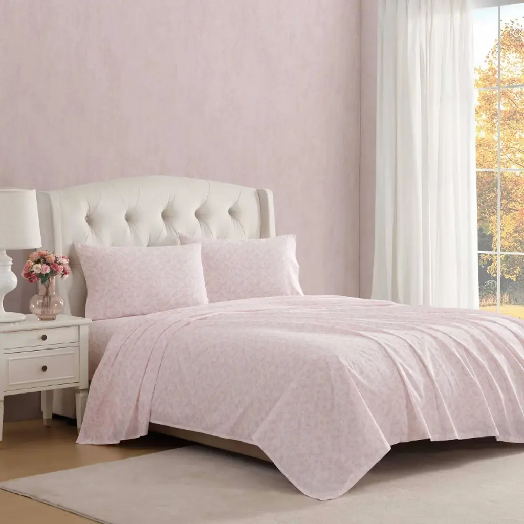 Laura Ashley Queen Antoinette Flannel Sheet Set Pink