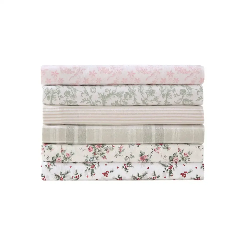 Bring a fresh look to your bed with Laura Ashley cotton flannel sheet sets, available in timeless prints and solid colors to complement any bedding ensemble. Crafted for ultimate comfort and warmth, these sheets undergo an 8-level brushing process, ensuring a luxuriously soft and cozy feel. The fully elasticized fitted sheet features premium elastic around all four sides for a secure fit, accommodating mattresses up to 15" deep (12" for twin size). Each machine-washable set includes one flat sheet, one fitted sheet, and two pillowcases, making it a perfect blend of style, quality, and convenience.